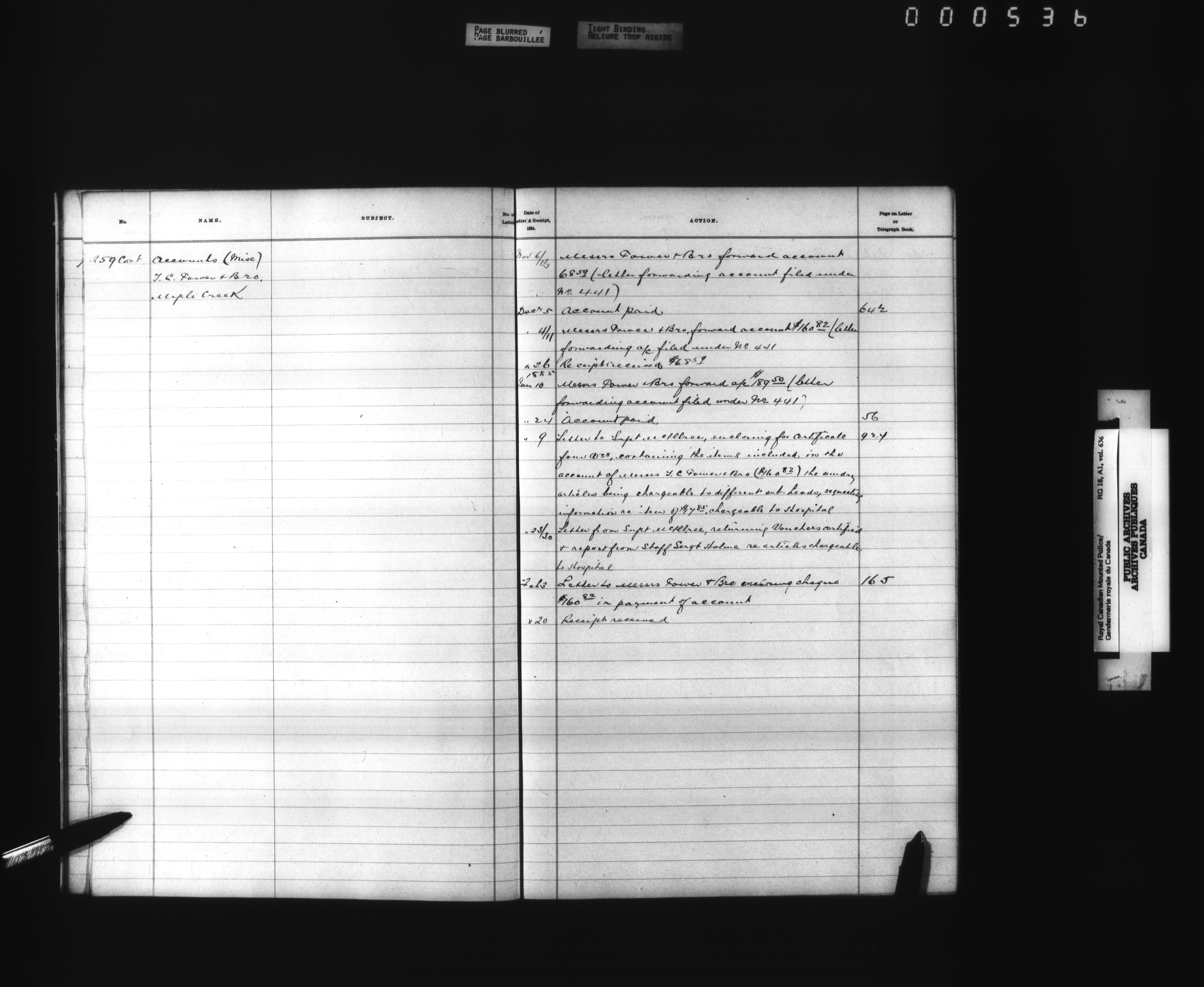 Royal Canadian Mounted Police, Office of the Comptroller, official correspondence : Indexes and registers - 4414