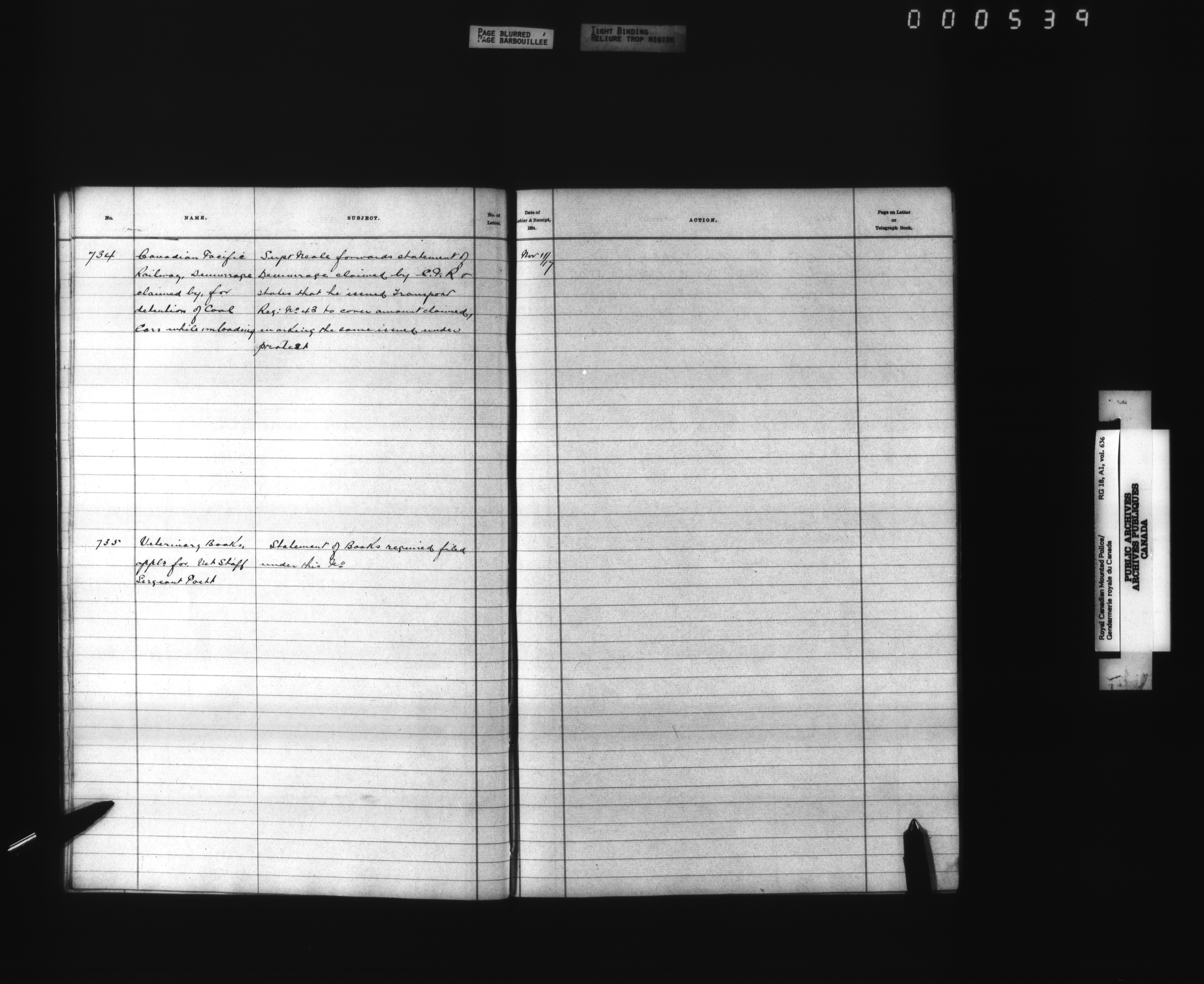 Royal Canadian Mounted Police, Office of the Comptroller, official correspondence : Indexes and registers - 4414