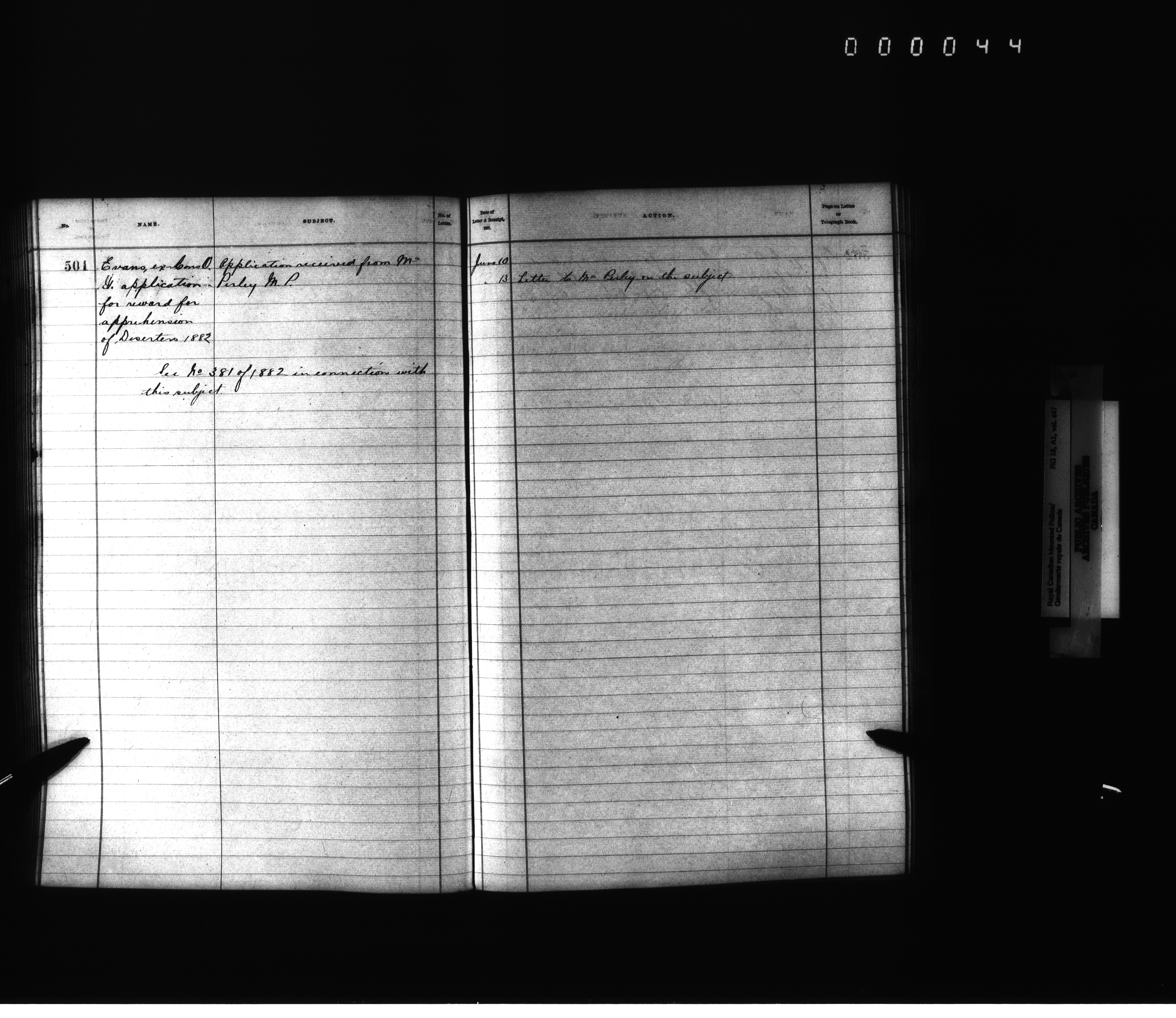 Royal Canadian Mounted Police, Office of the Comptroller, official correspondence : Indexes and registers - 4419