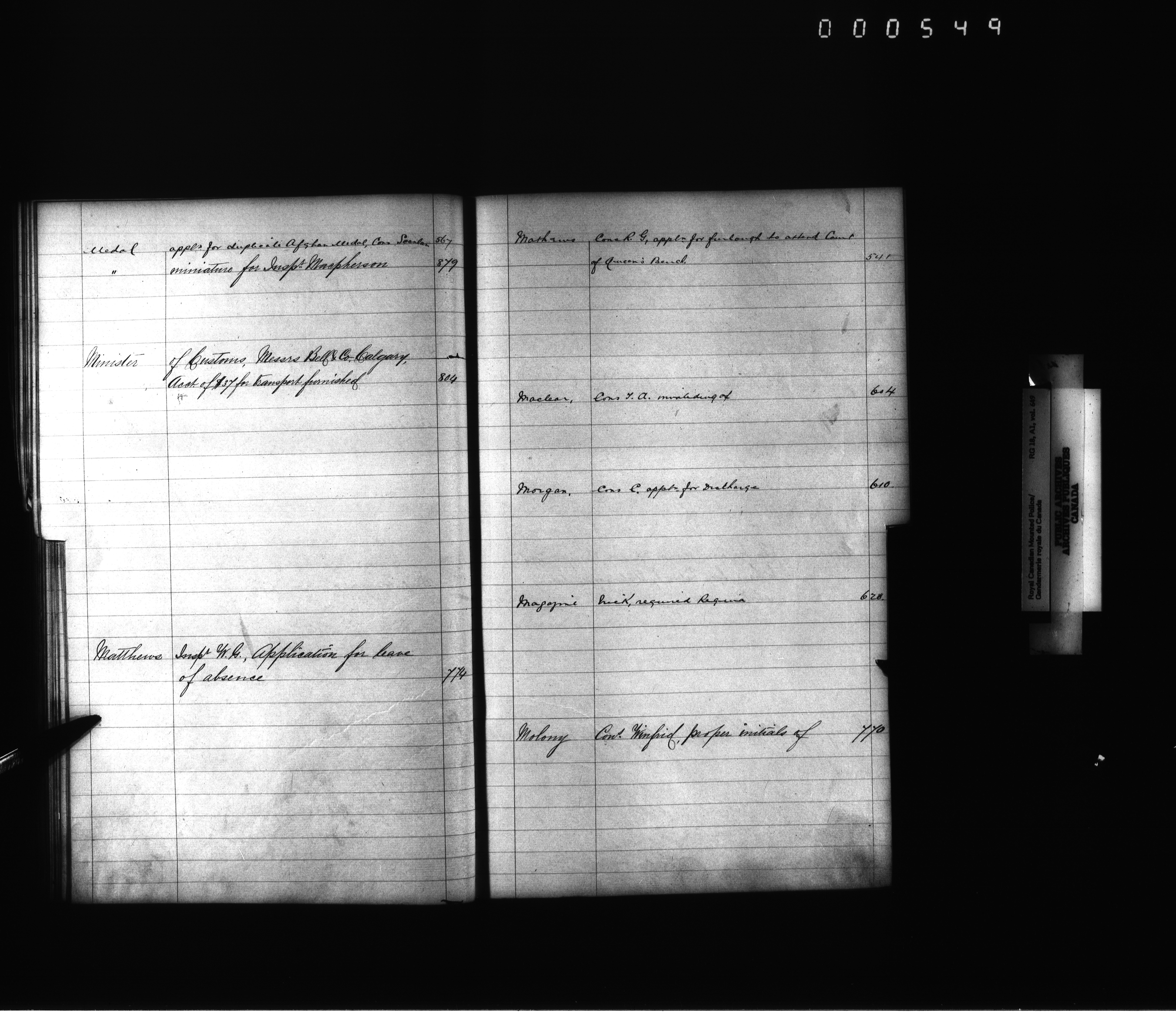 Royal Canadian Mounted Police, Office of the Comptroller, official correspondence : Indexes and registers - 4419