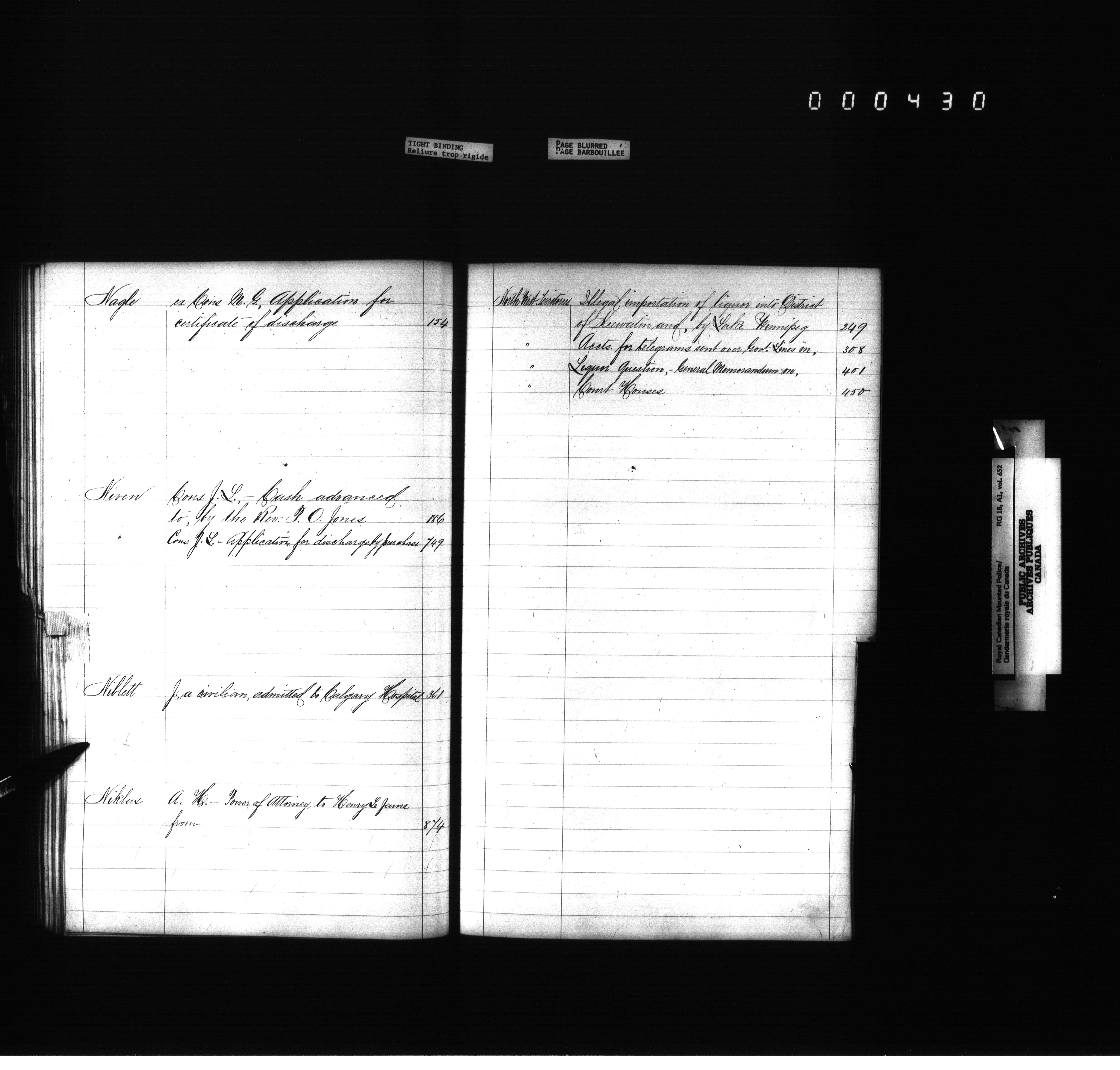 Royal Canadian Mounted Police, Office of the Comptroller, official correspondence : Indexes and registers - 4421