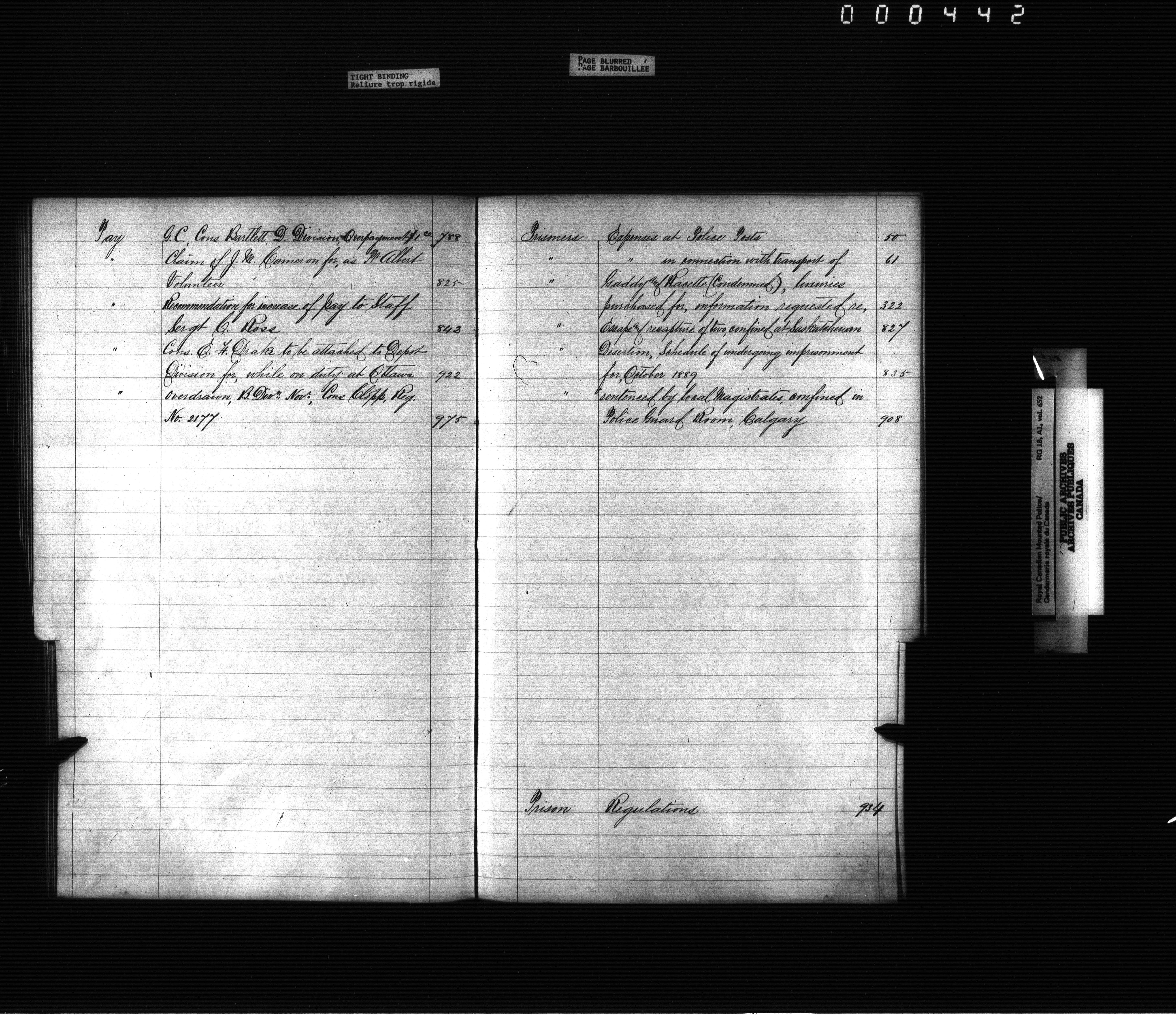 Royal Canadian Mounted Police, Office of the Comptroller, official correspondence : Indexes and registers - 4421