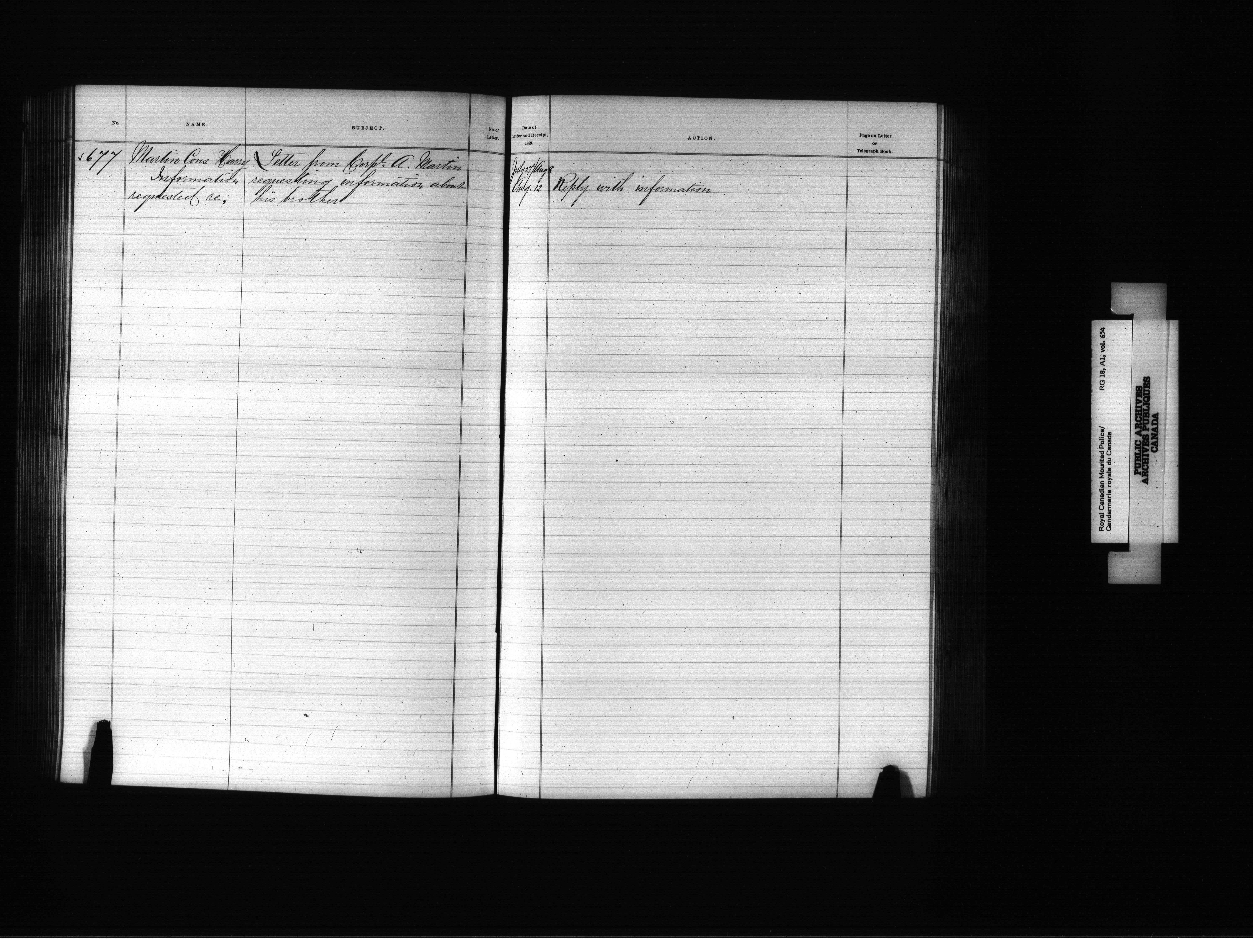 Royal Canadian Mounted Police, Office of the Comptroller, official correspondence : Indexes and registers - 4423