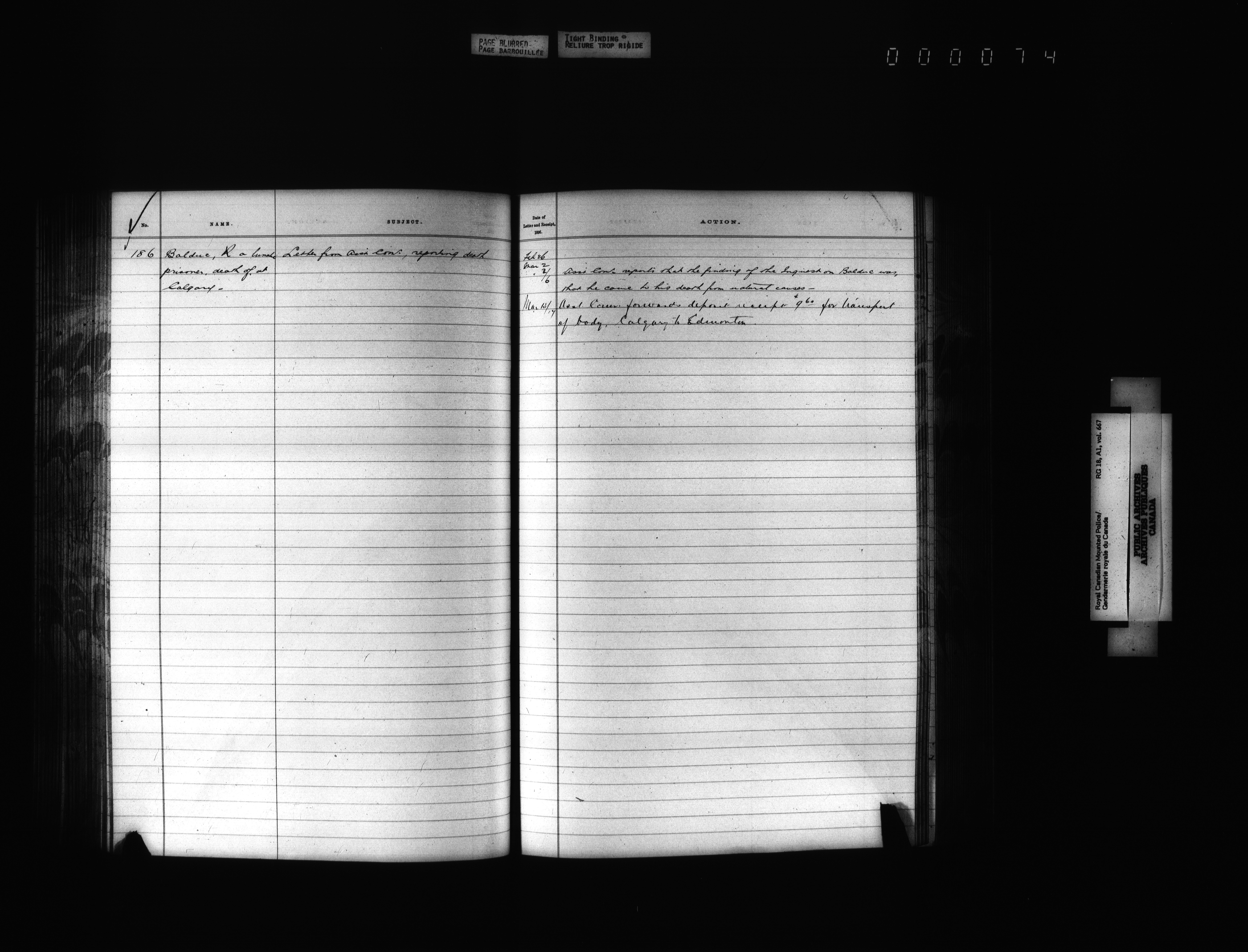 Royal Canadian Mounted Police, Office of the Comptroller, official correspondence : Indexes and registers - 4428