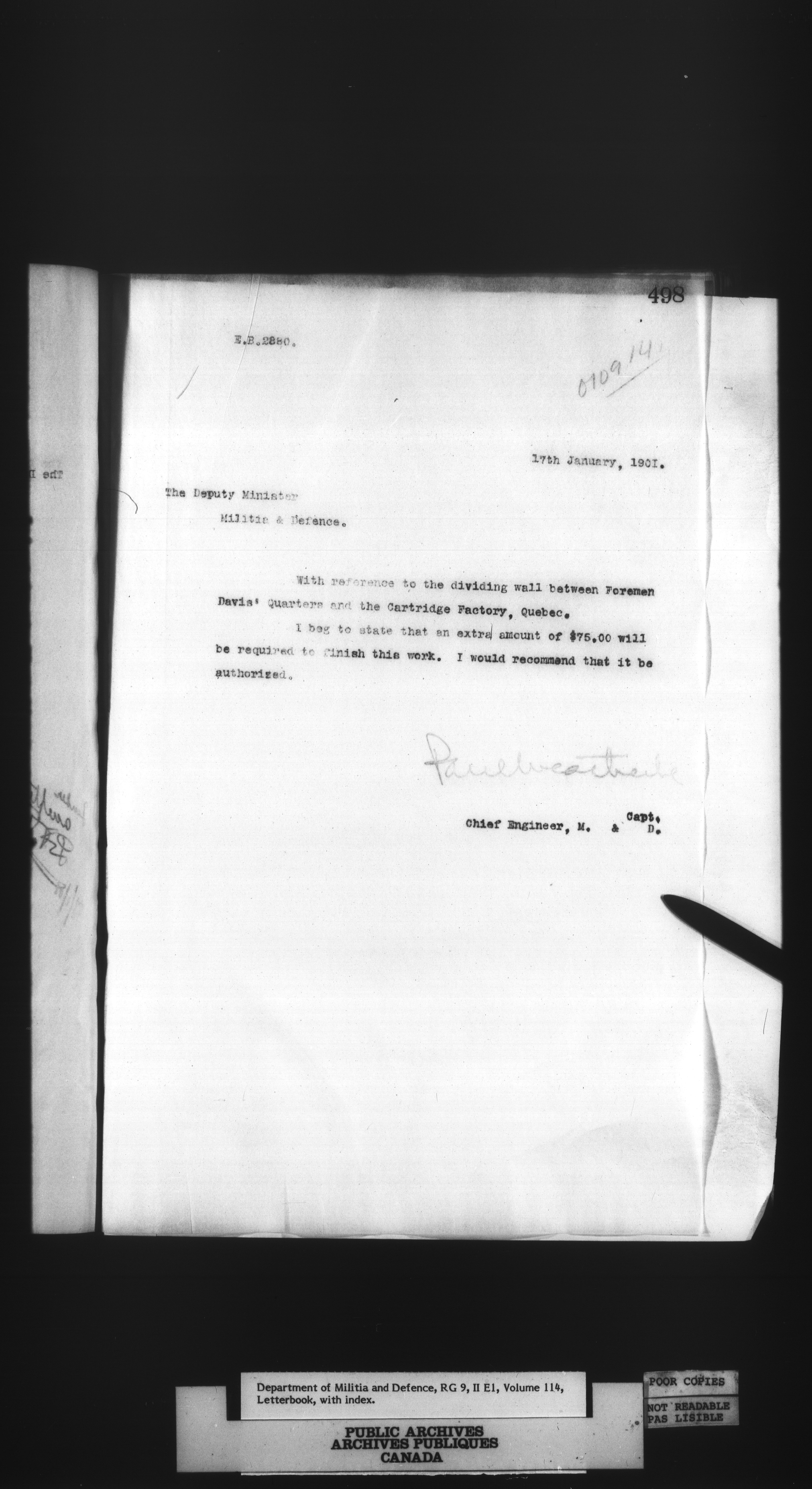 Department of Militia and Defence : Engineer Branch, correspondence and letterbooks, 1880-1903 : T-443