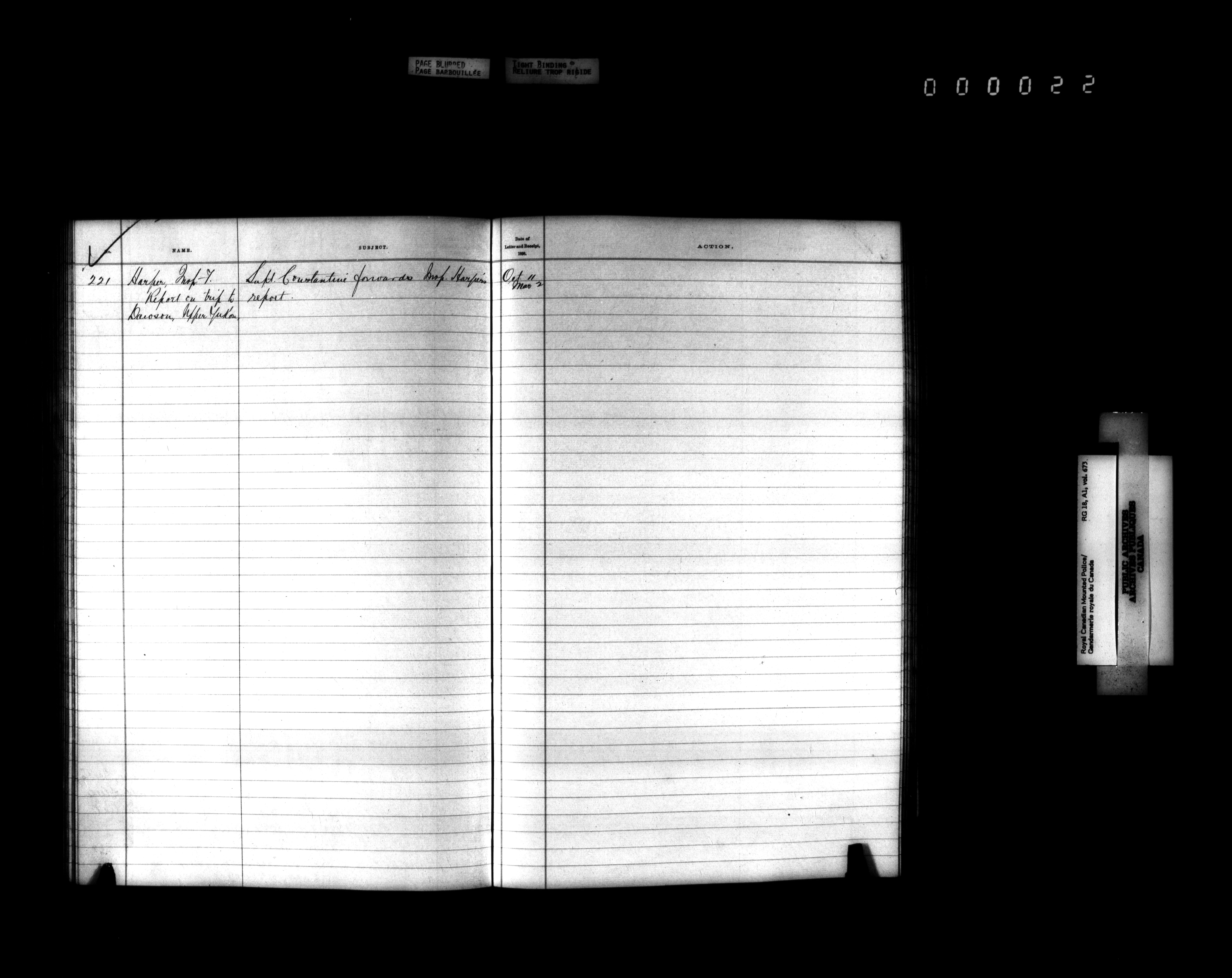 Royal Canadian Mounted Police, Office of the Comptroller, official correspondence : Indexes and registers - 4431