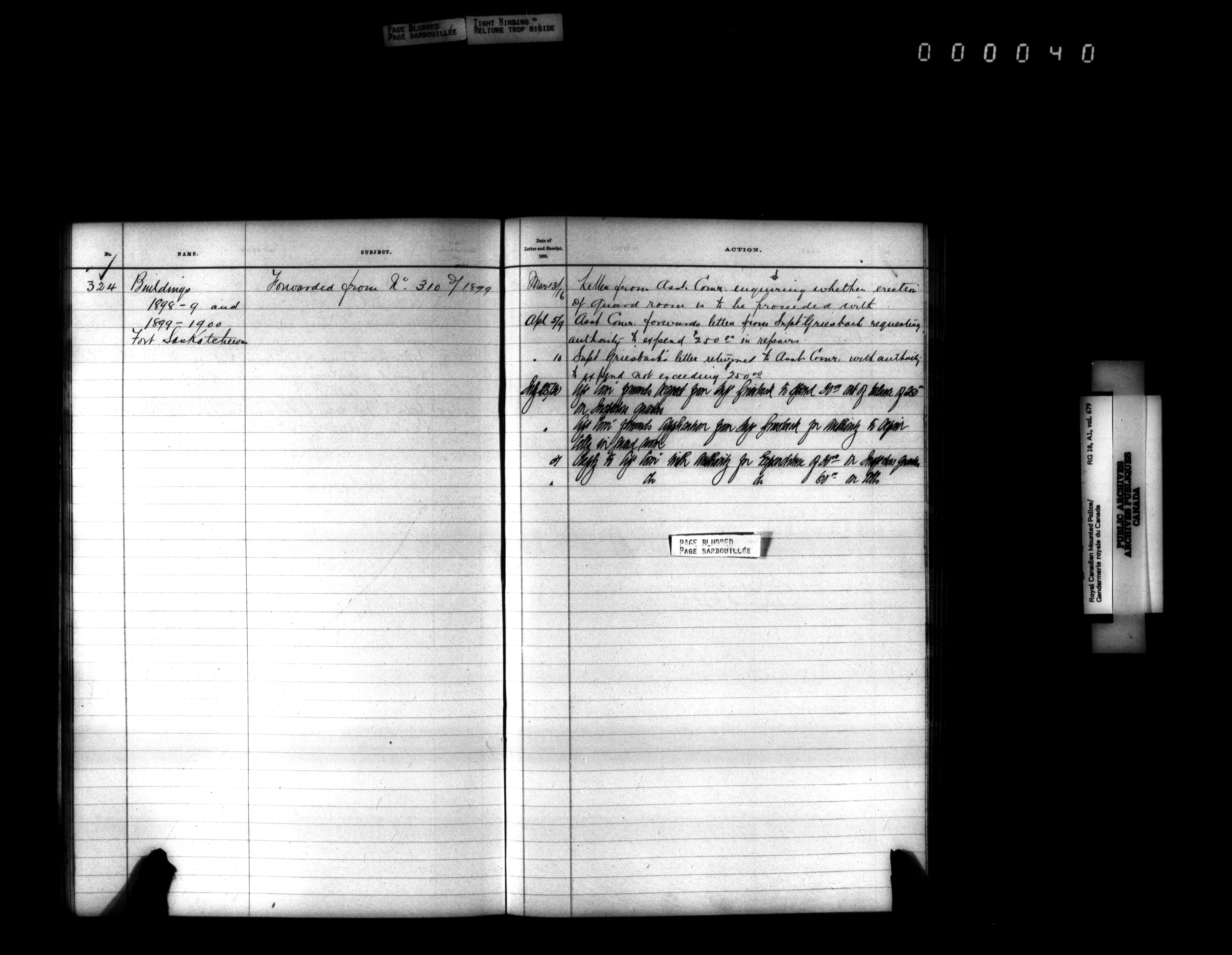 Royal Canadian Mounted Police, Office of the Comptroller, official correspondence : Indexes and registers - 4434