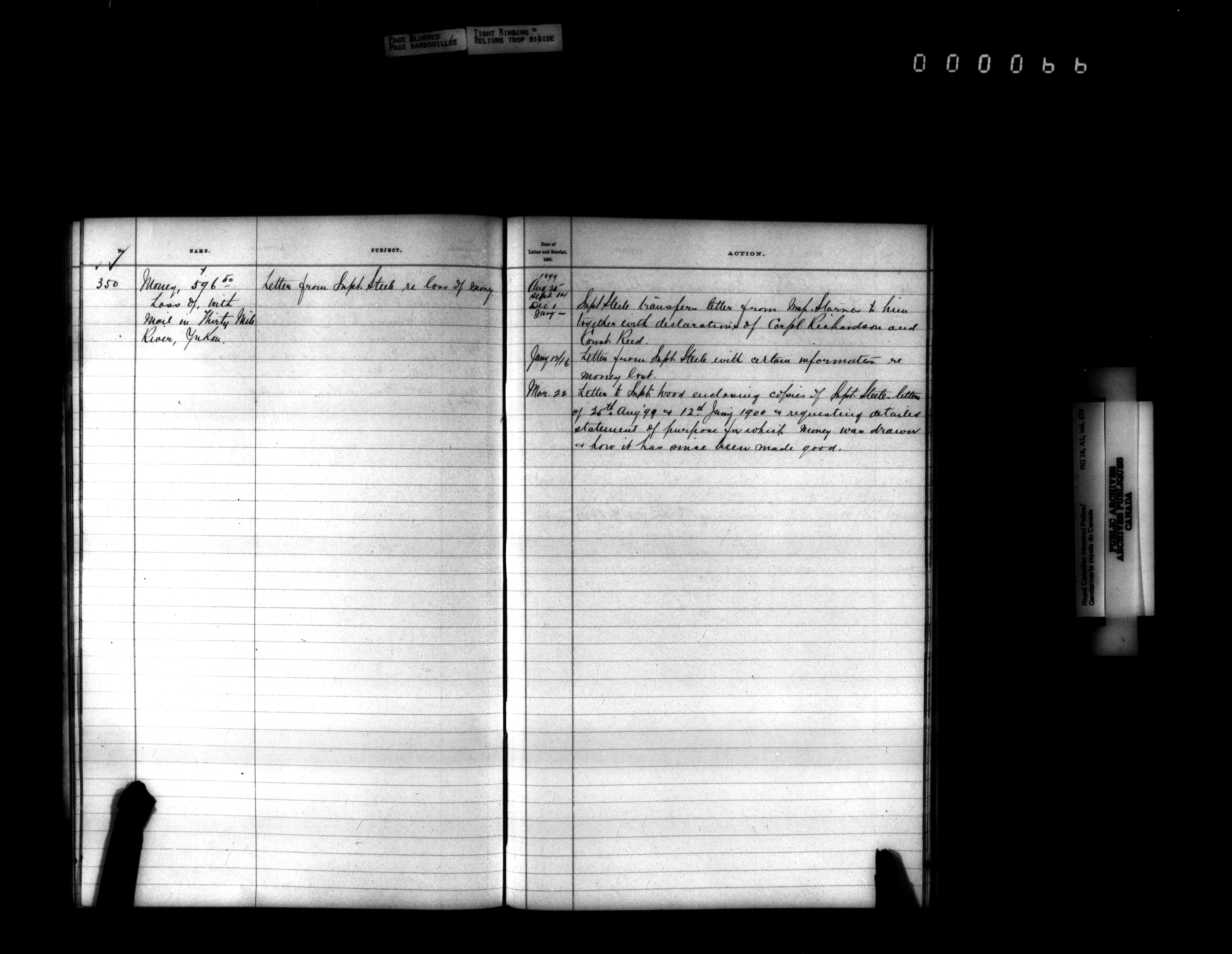 Royal Canadian Mounted Police, Office of the Comptroller, official correspondence : Indexes and registers - 4434
