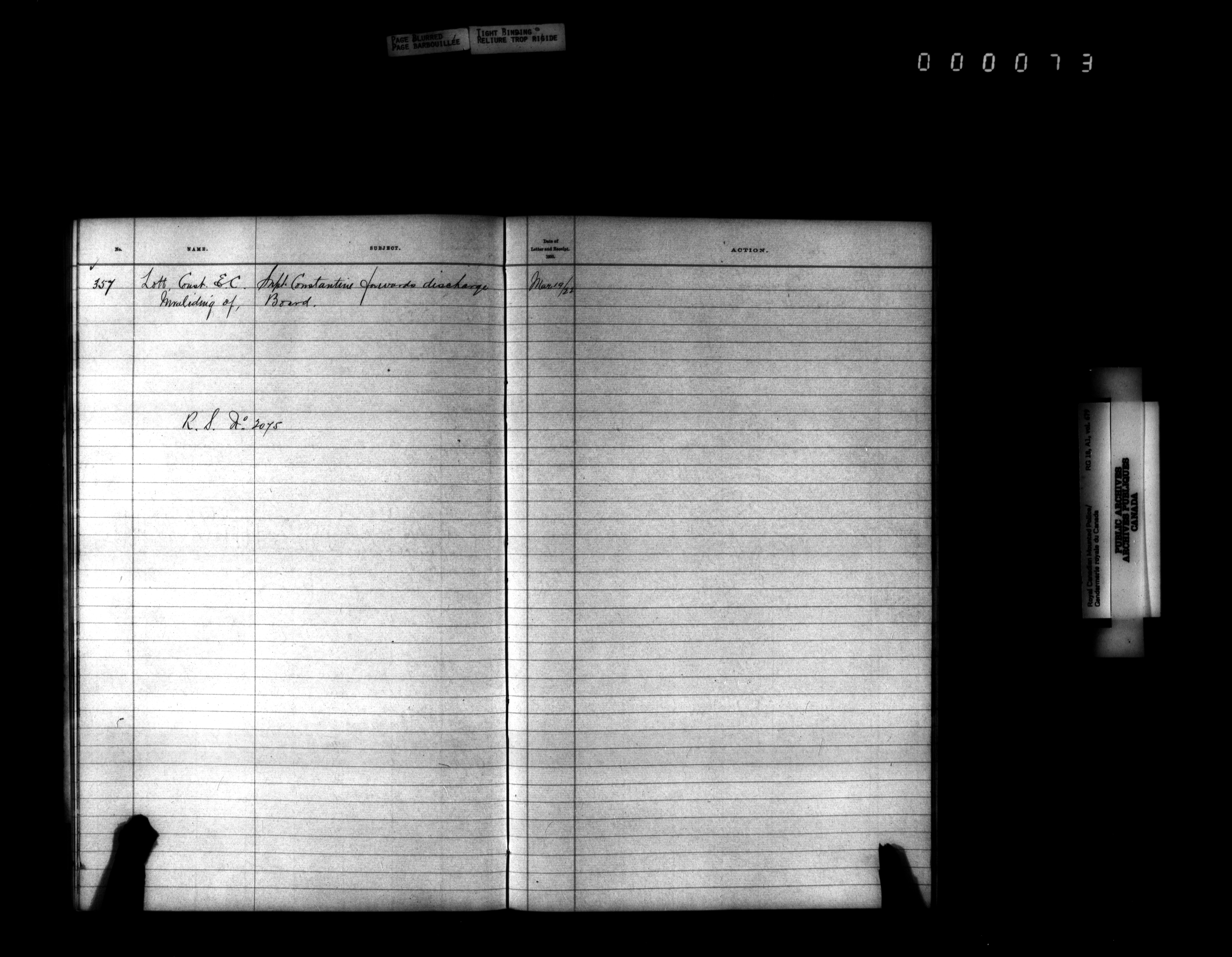 Royal Canadian Mounted Police, Office of the Comptroller, official correspondence : Indexes and registers - 4434