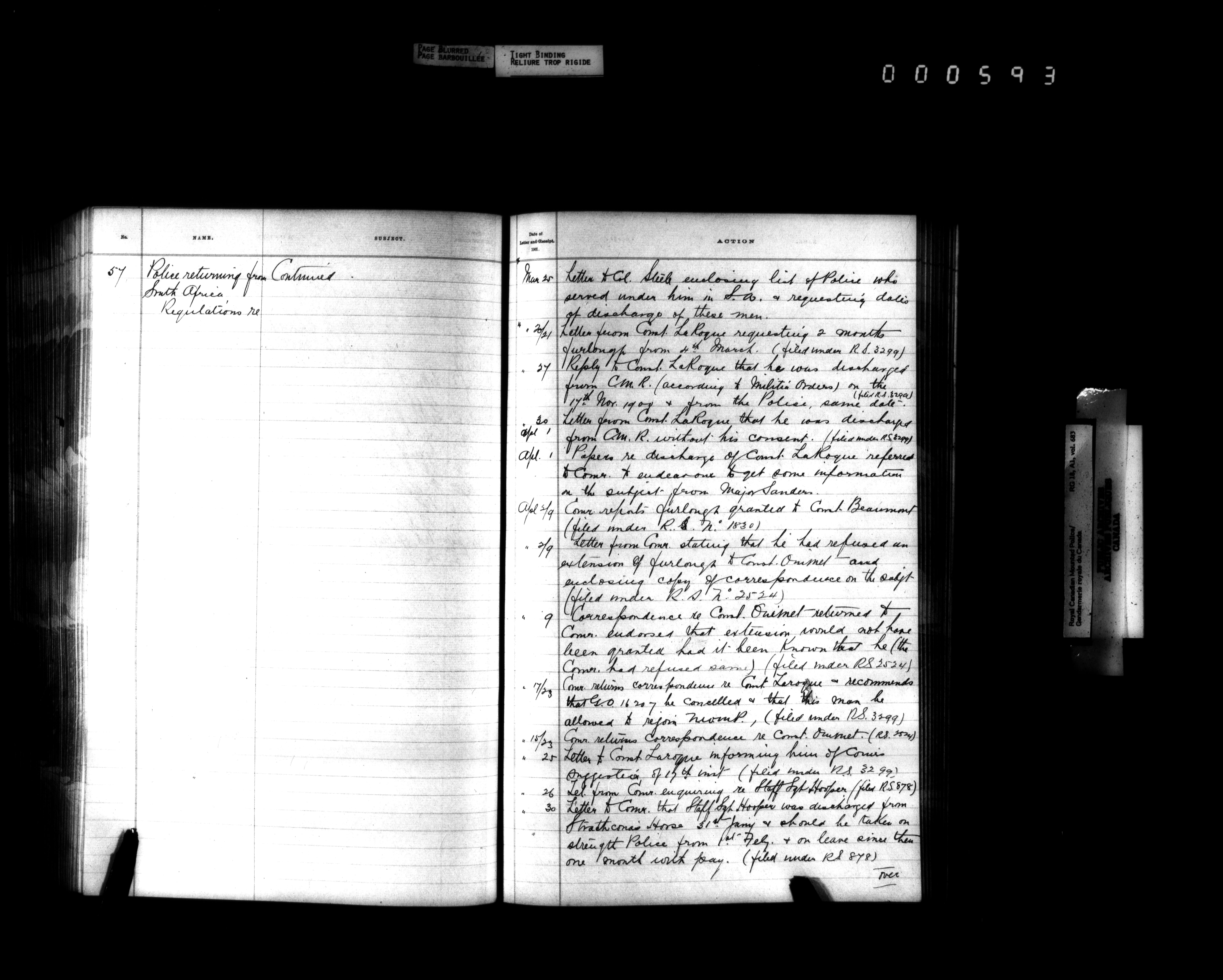 Royal Canadian Mounted Police, Office of the Comptroller, official correspondence : Indexes and registers - 4435