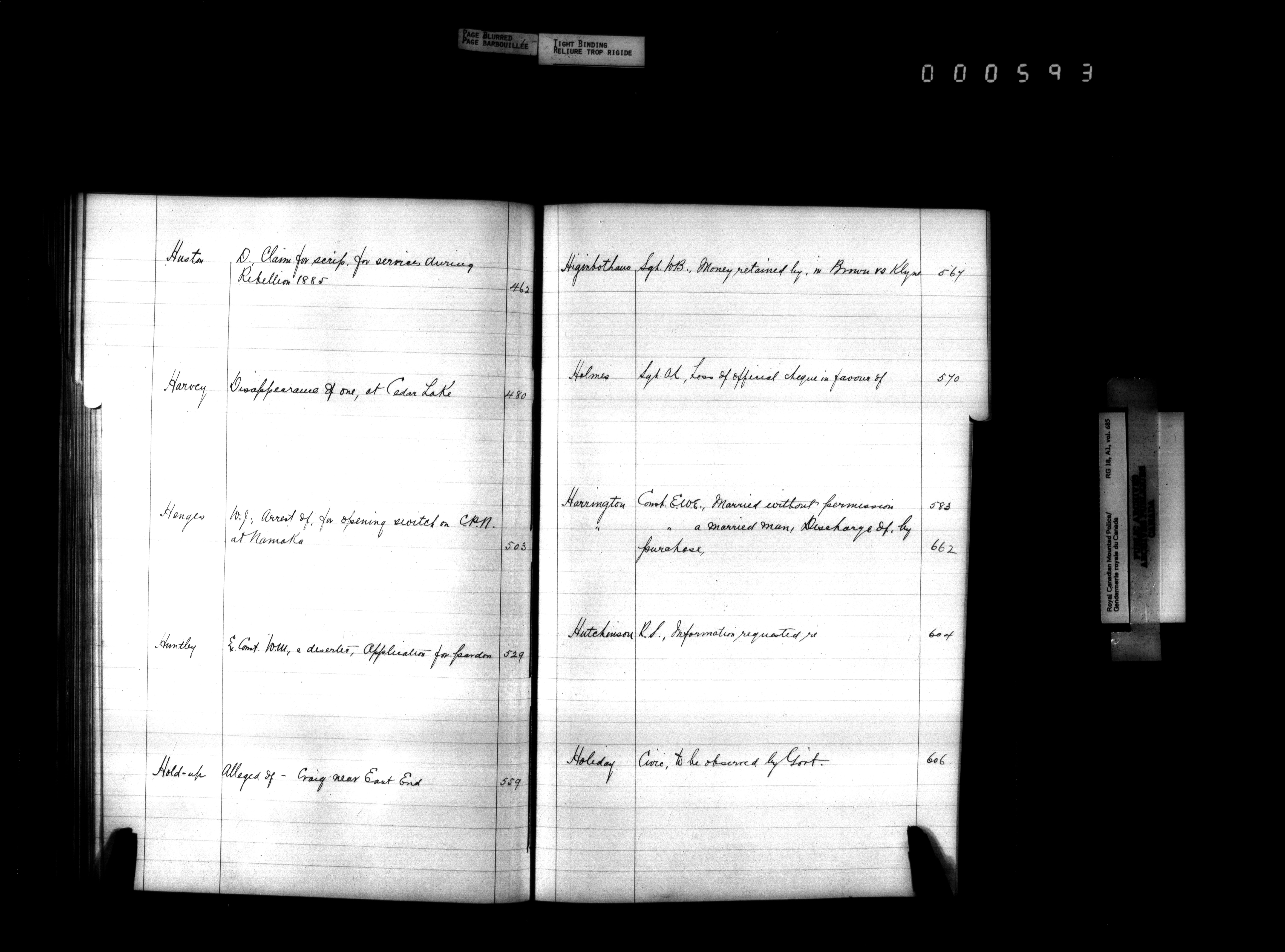 Royal Canadian Mounted Police, Office of the Comptroller, official correspondence : Indexes and registers - 4436