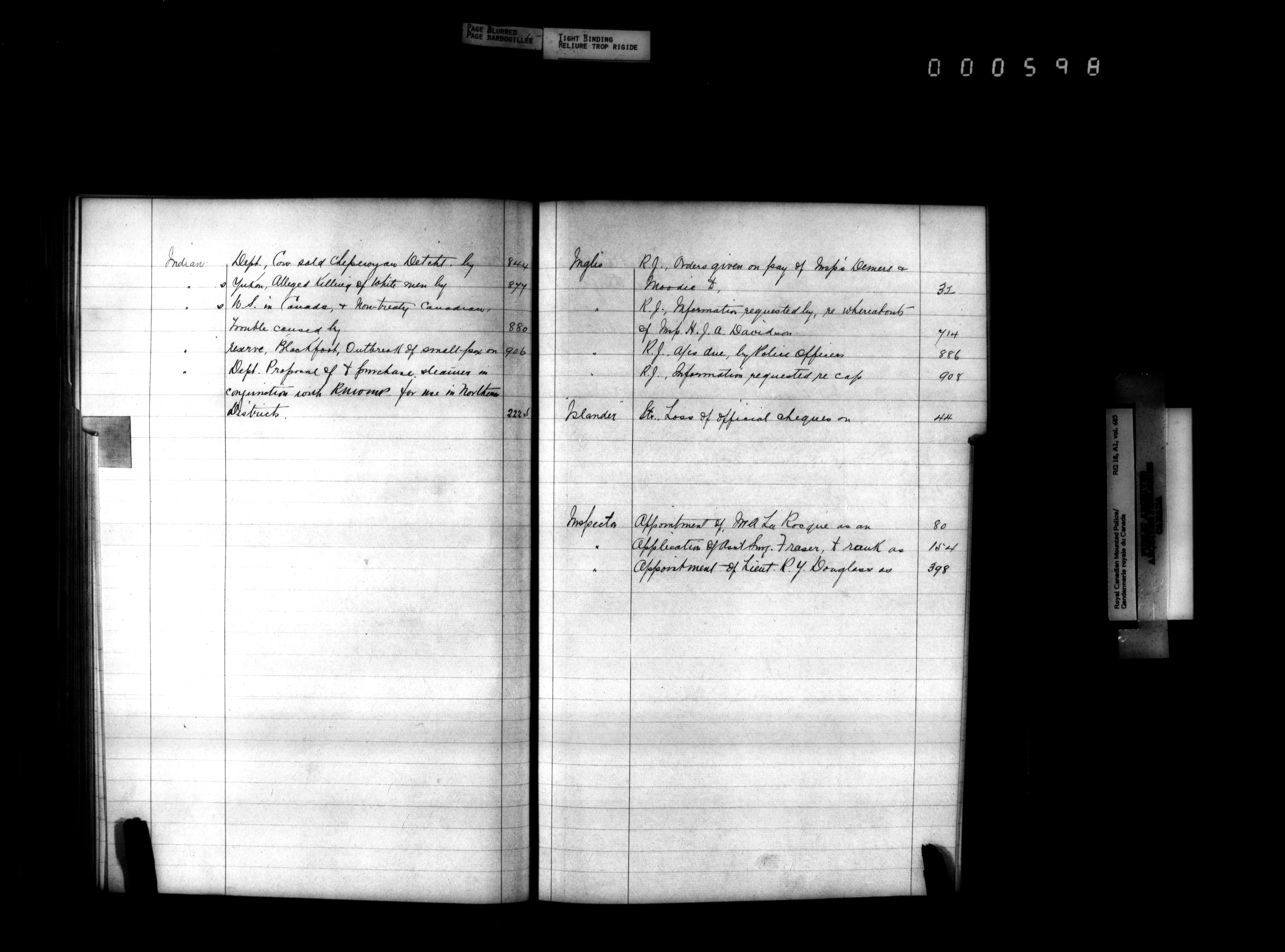 Royal Canadian Mounted Police, Office of the Comptroller, official correspondence : Indexes and registers - 4436