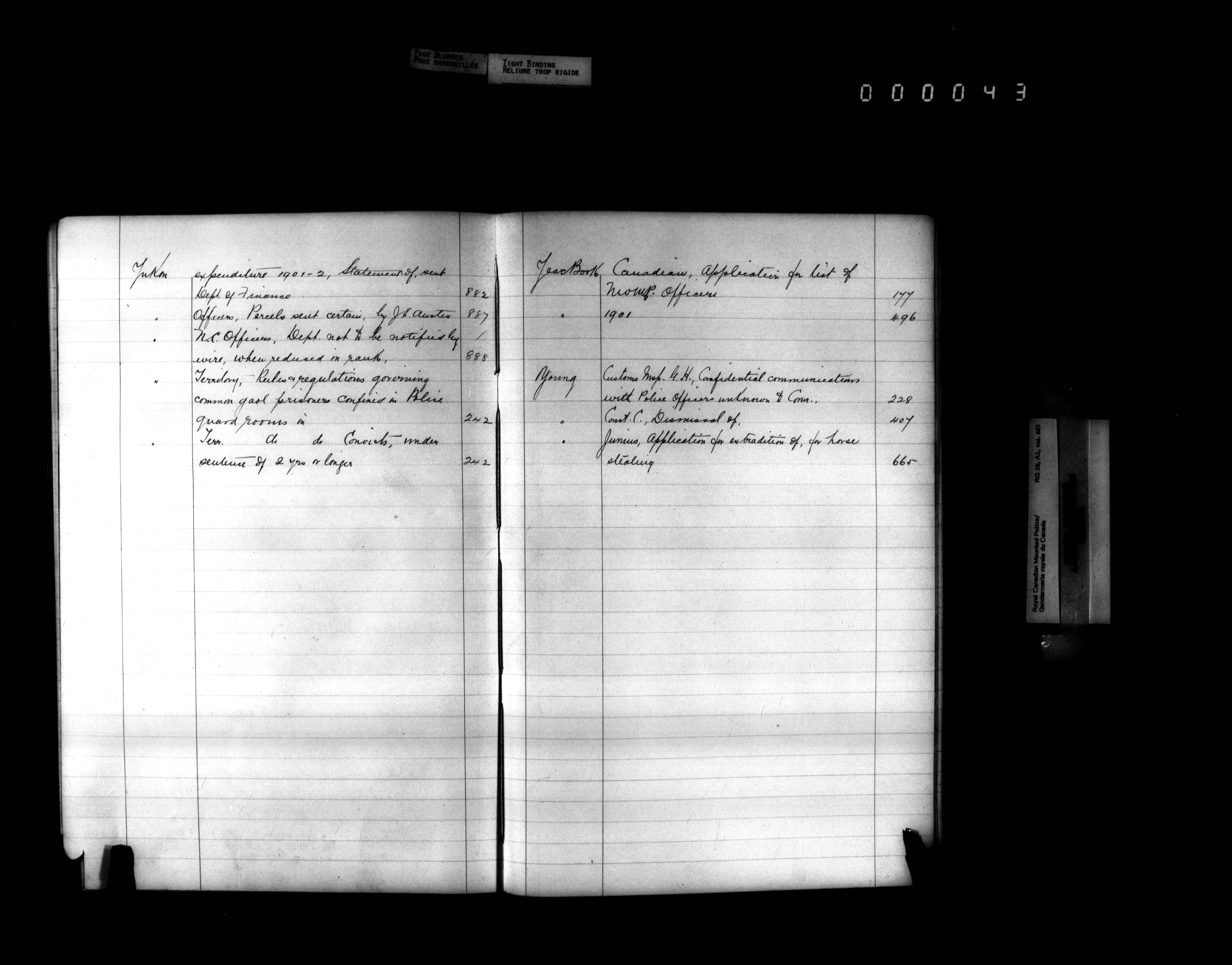 Royal Canadian Mounted Police, Office of the Comptroller, official correspondence : Indexes and registers - 4437