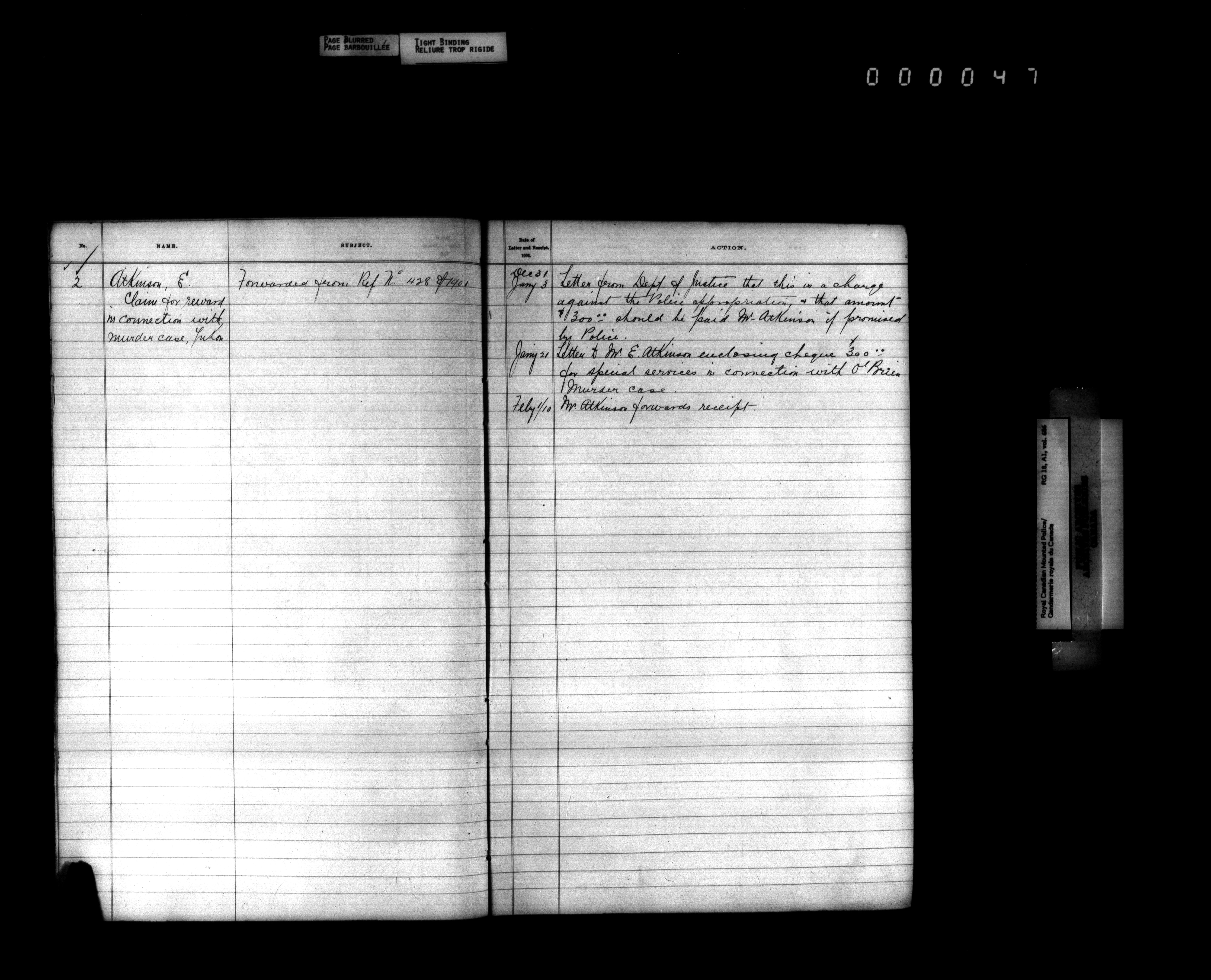 Royal Canadian Mounted Police, Office of the Comptroller, official correspondence : Indexes and registers - 4437
