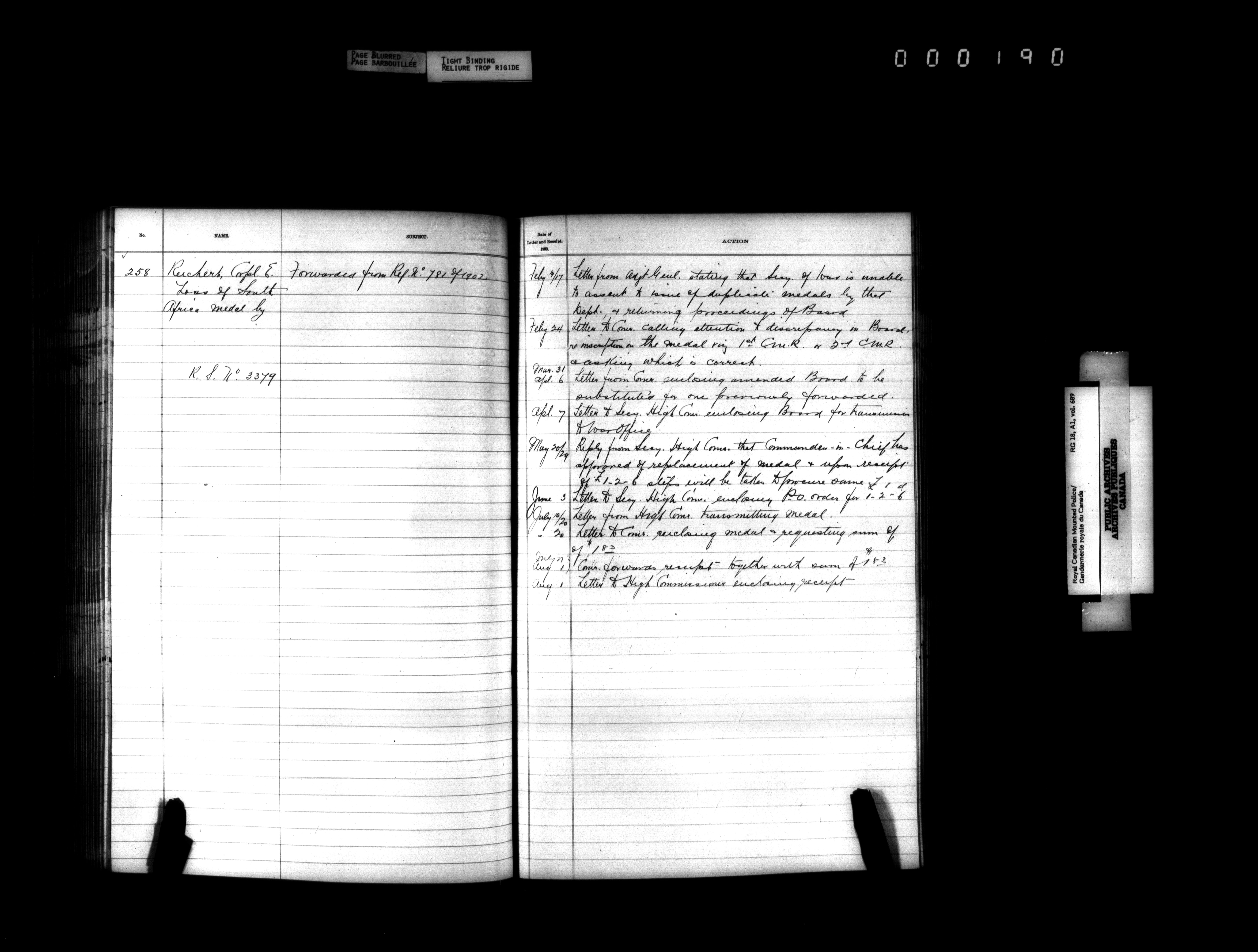 Royal Canadian Mounted Police, Office of the Comptroller, official correspondence : Indexes and registers - 4439
