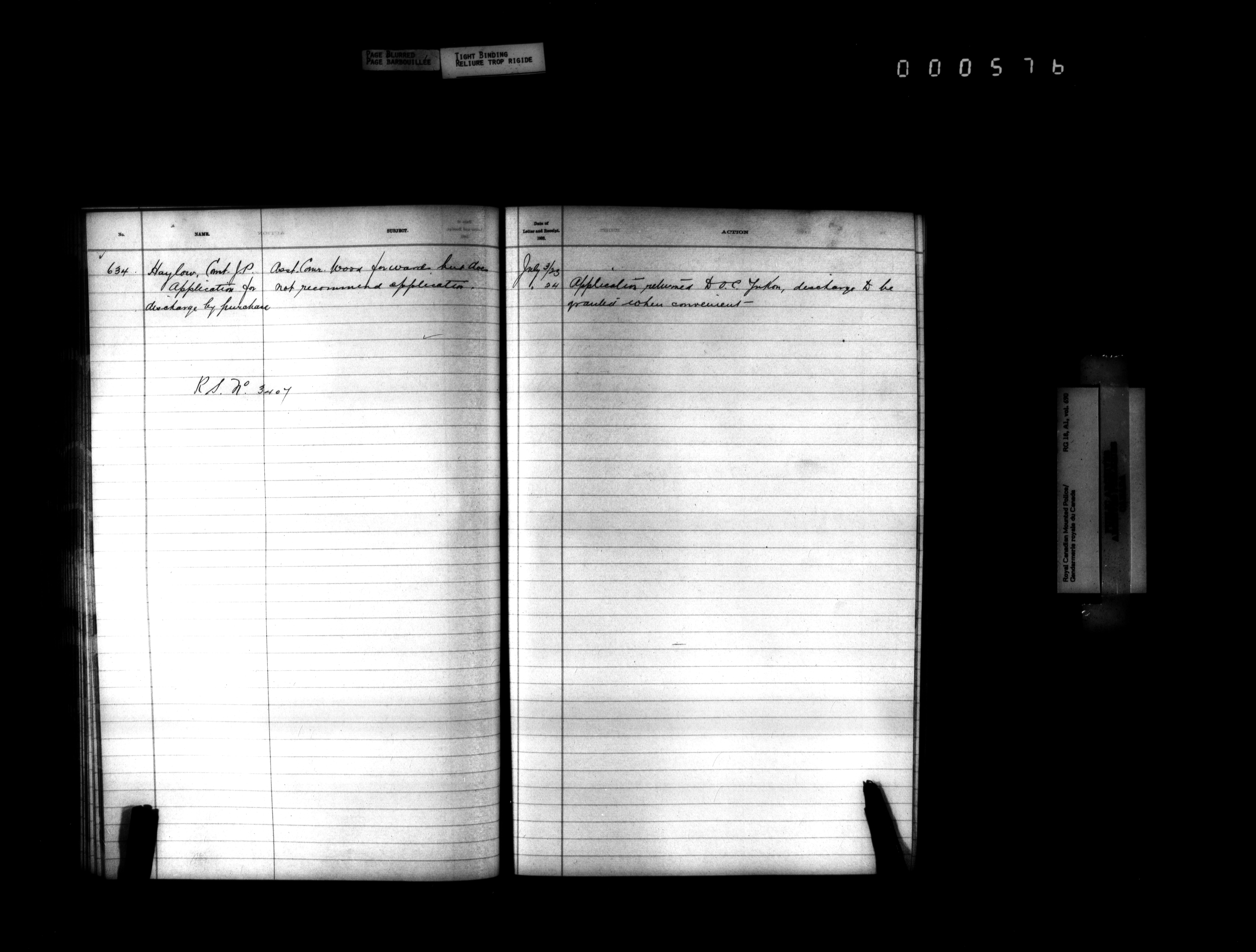 Royal Canadian Mounted Police, Office of the Comptroller, official correspondence : Indexes and registers - 4439