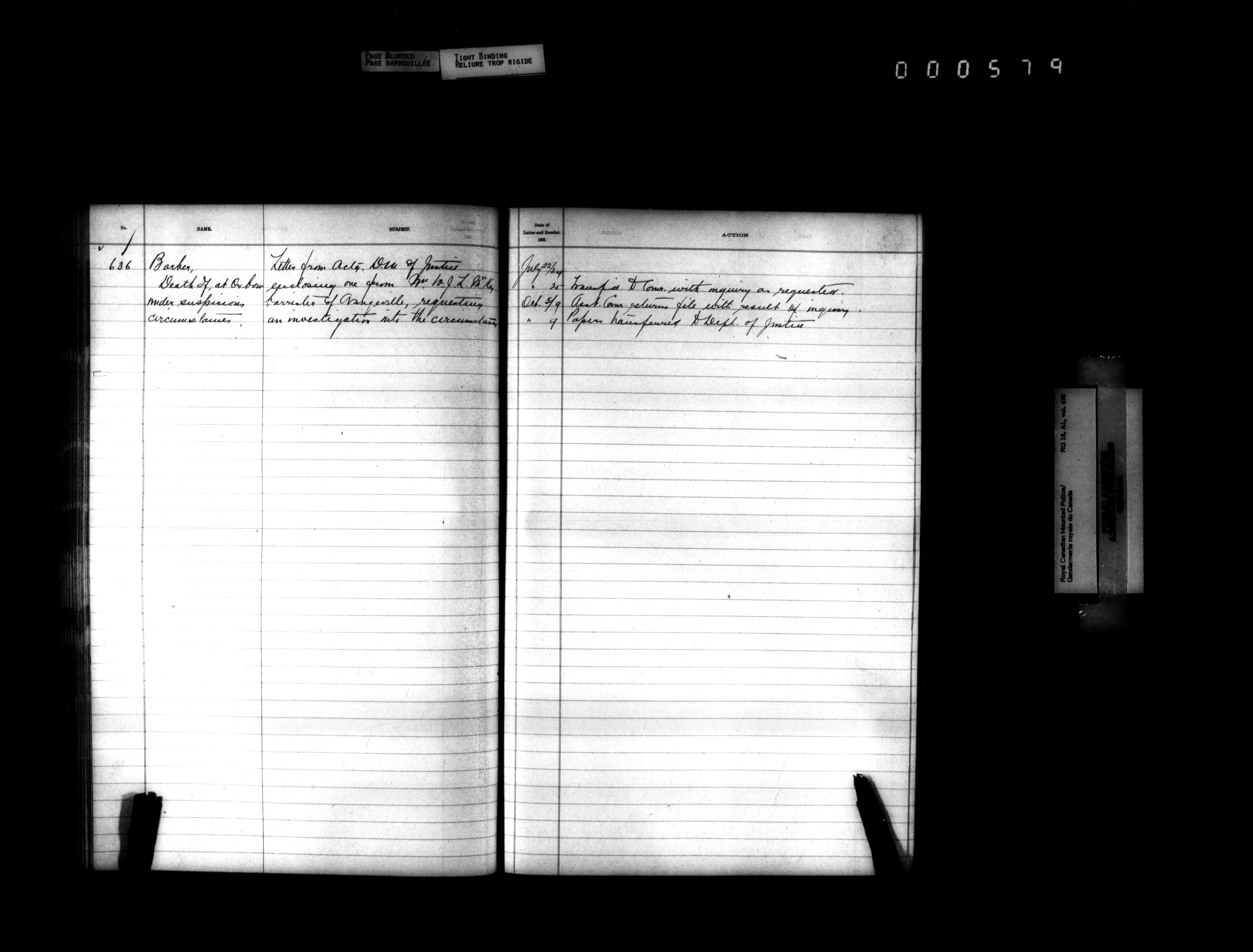 Royal Canadian Mounted Police, Office of the Comptroller, official correspondence : Indexes and registers - 4439