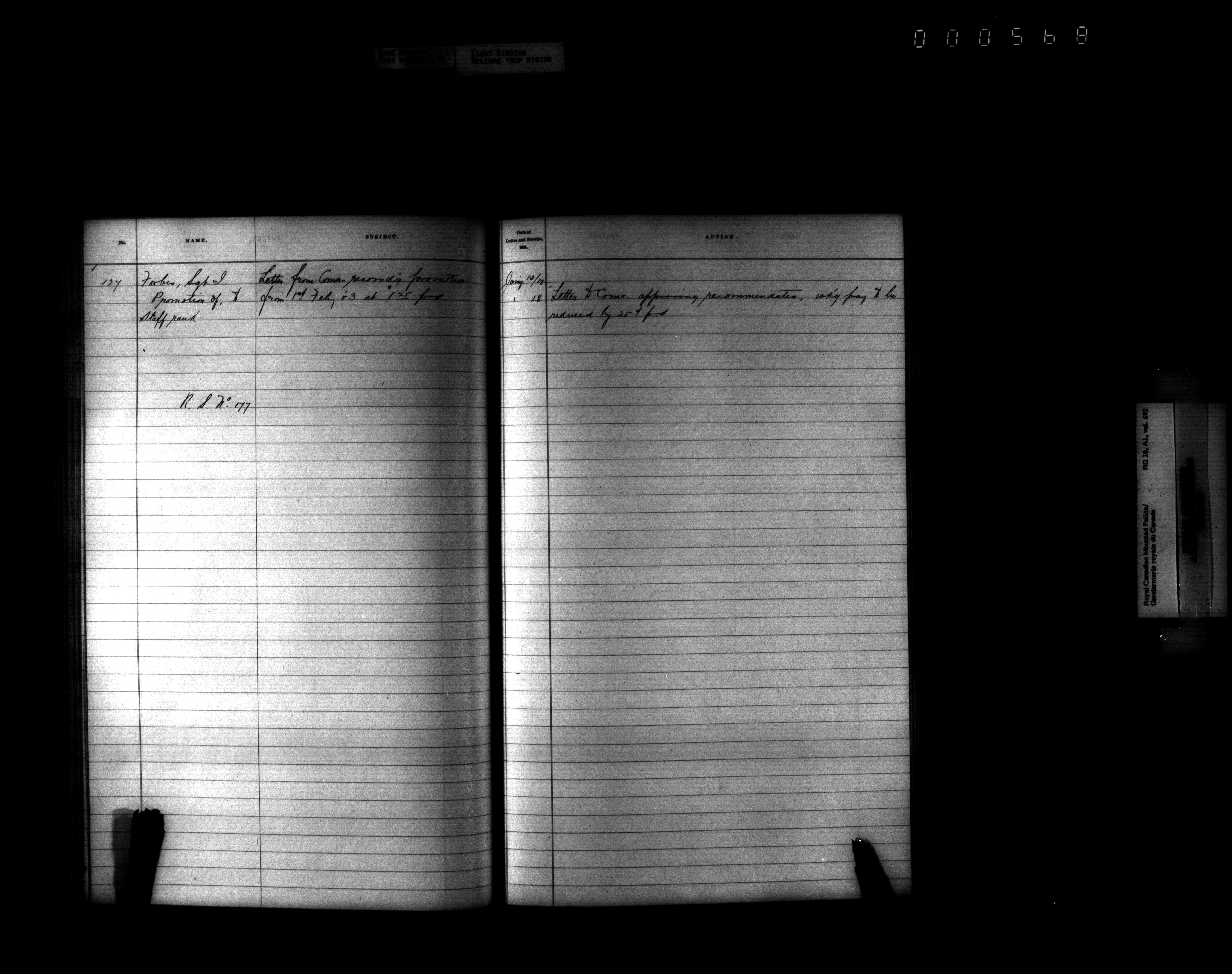 Royal Canadian Mounted Police, Office of the Comptroller, official correspondence : Indexes and registers - 4440