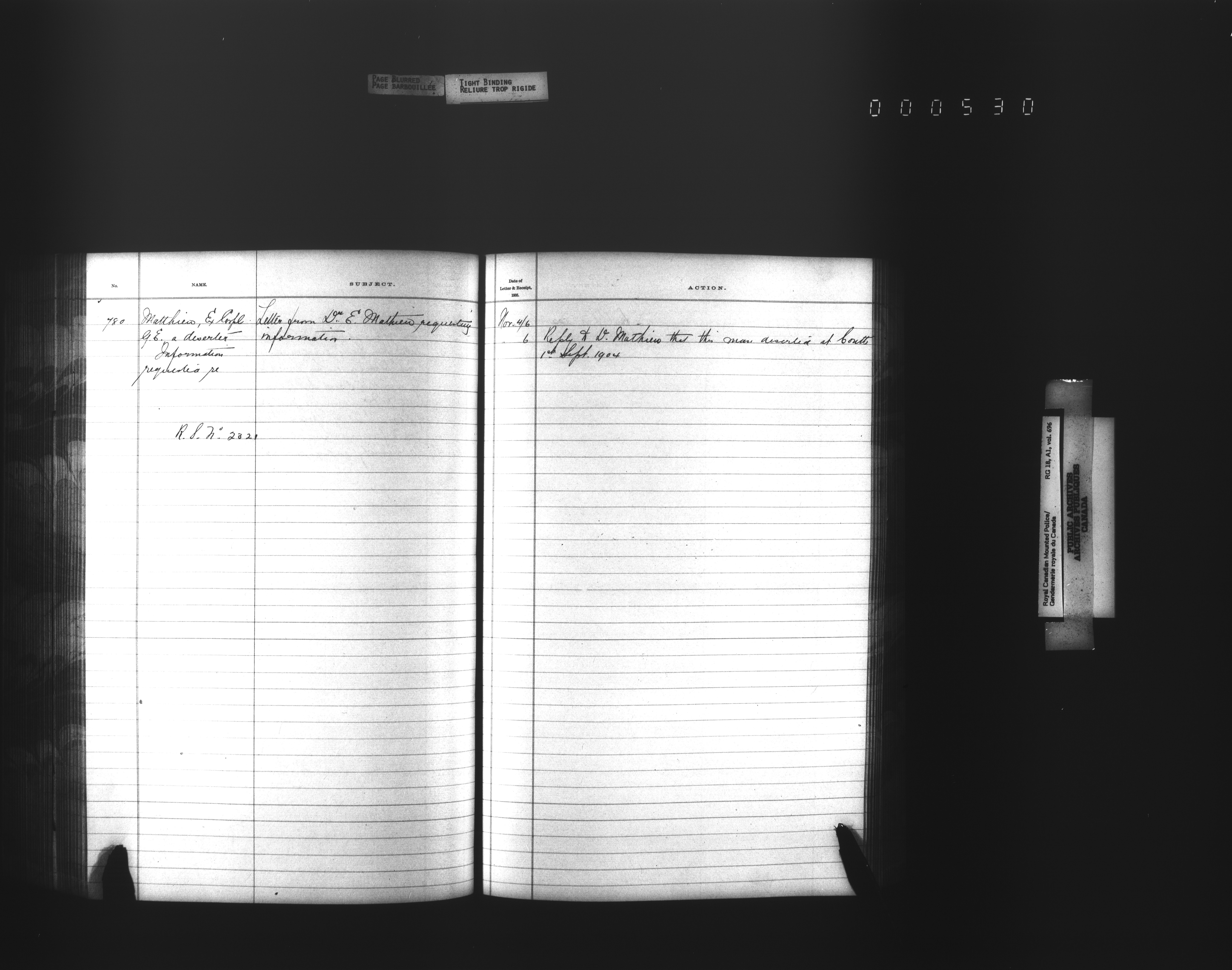 Royal Canadian Mounted Police, Office of the Comptroller, official correspondence : Indexes and registers - 4443