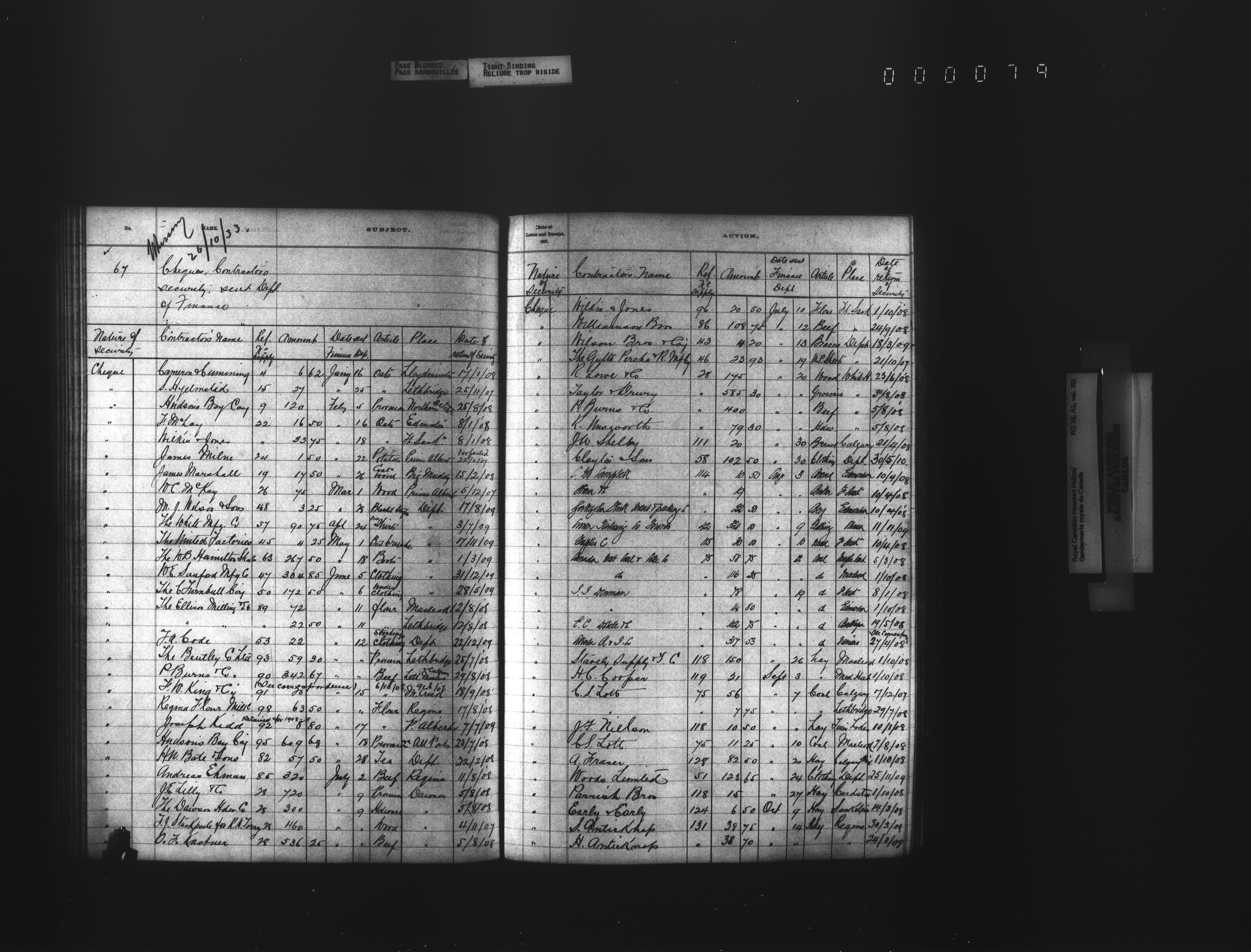 Royal Canadian Mounted Police, Office of the Comptroller, official correspondence : Indexes and registers - 4446