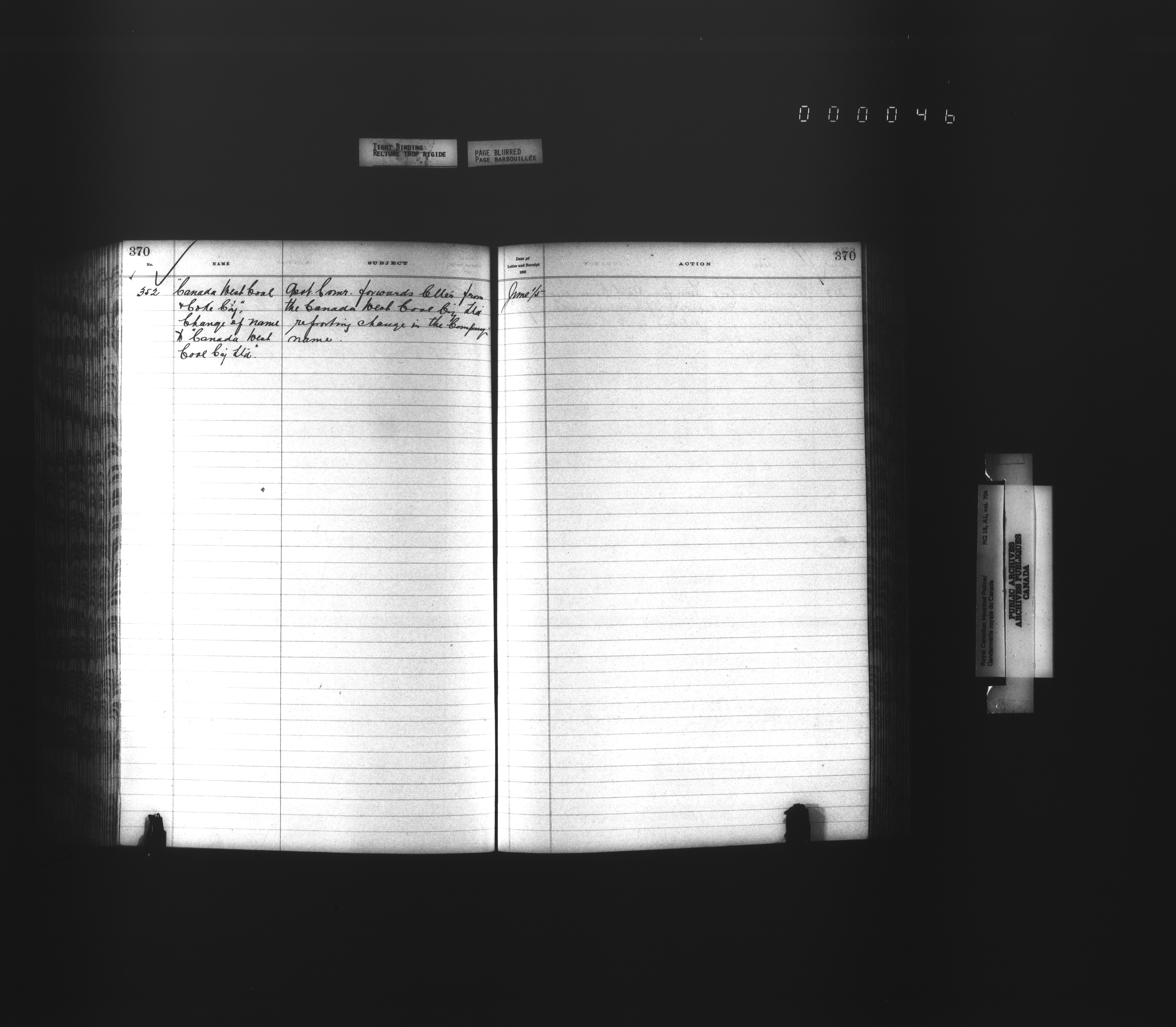 Royal Canadian Mounted Police, Office of the Comptroller, official correspondence : Indexes and registers - 4448
