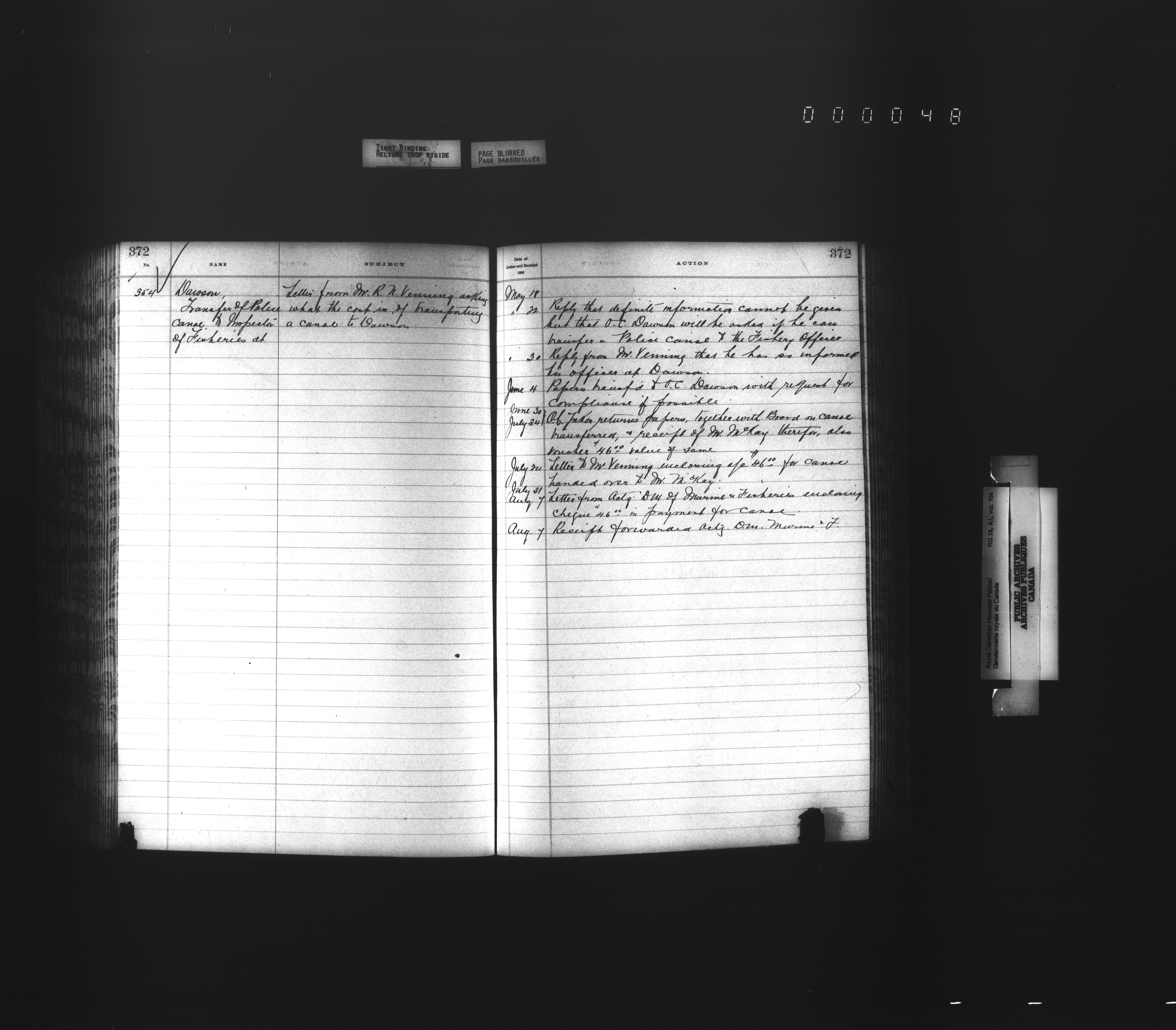 Royal Canadian Mounted Police, Office of the Comptroller, official correspondence : Indexes and registers - 4448