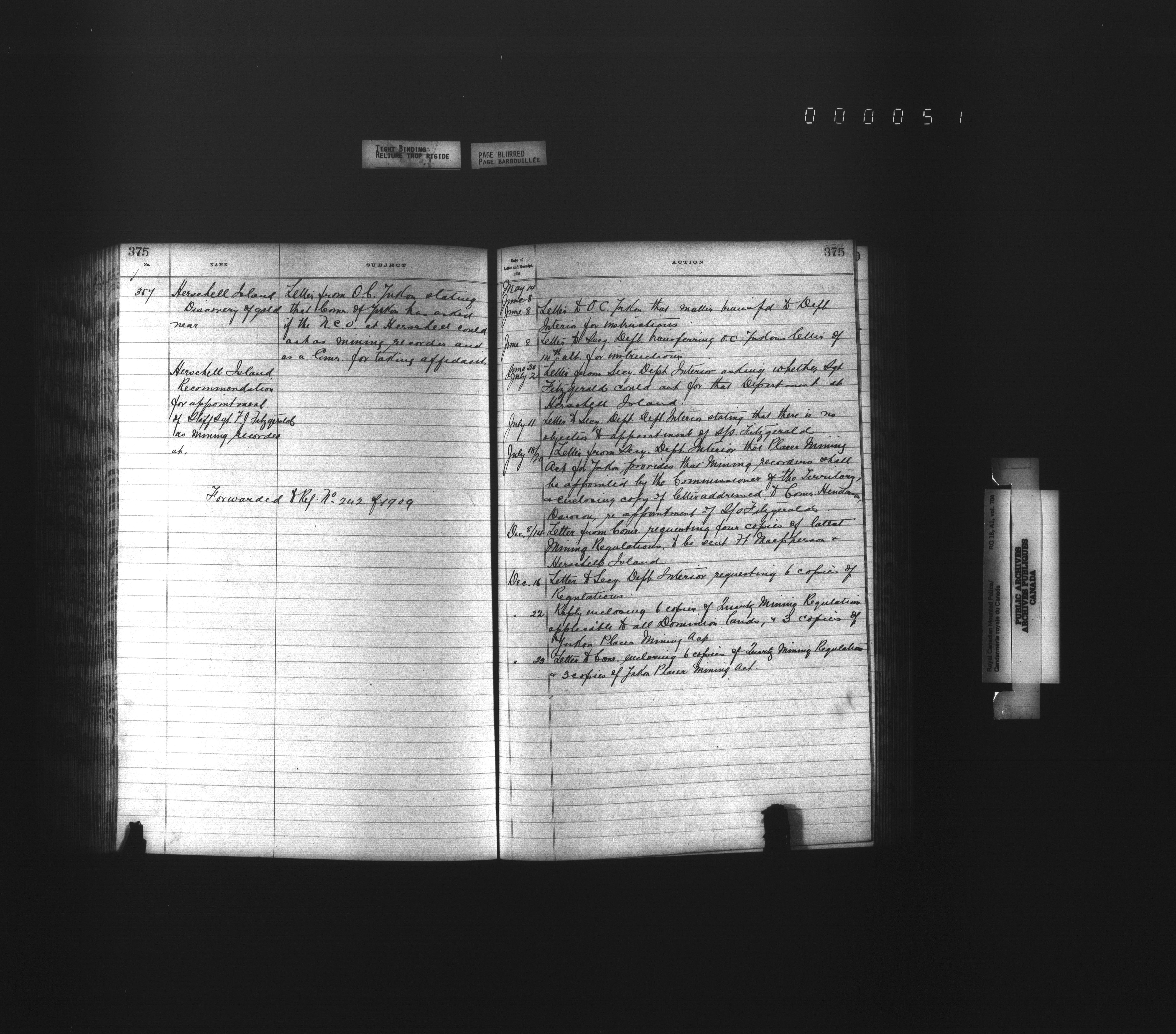 Royal Canadian Mounted Police, Office of the Comptroller, official correspondence : Indexes and registers - 4448