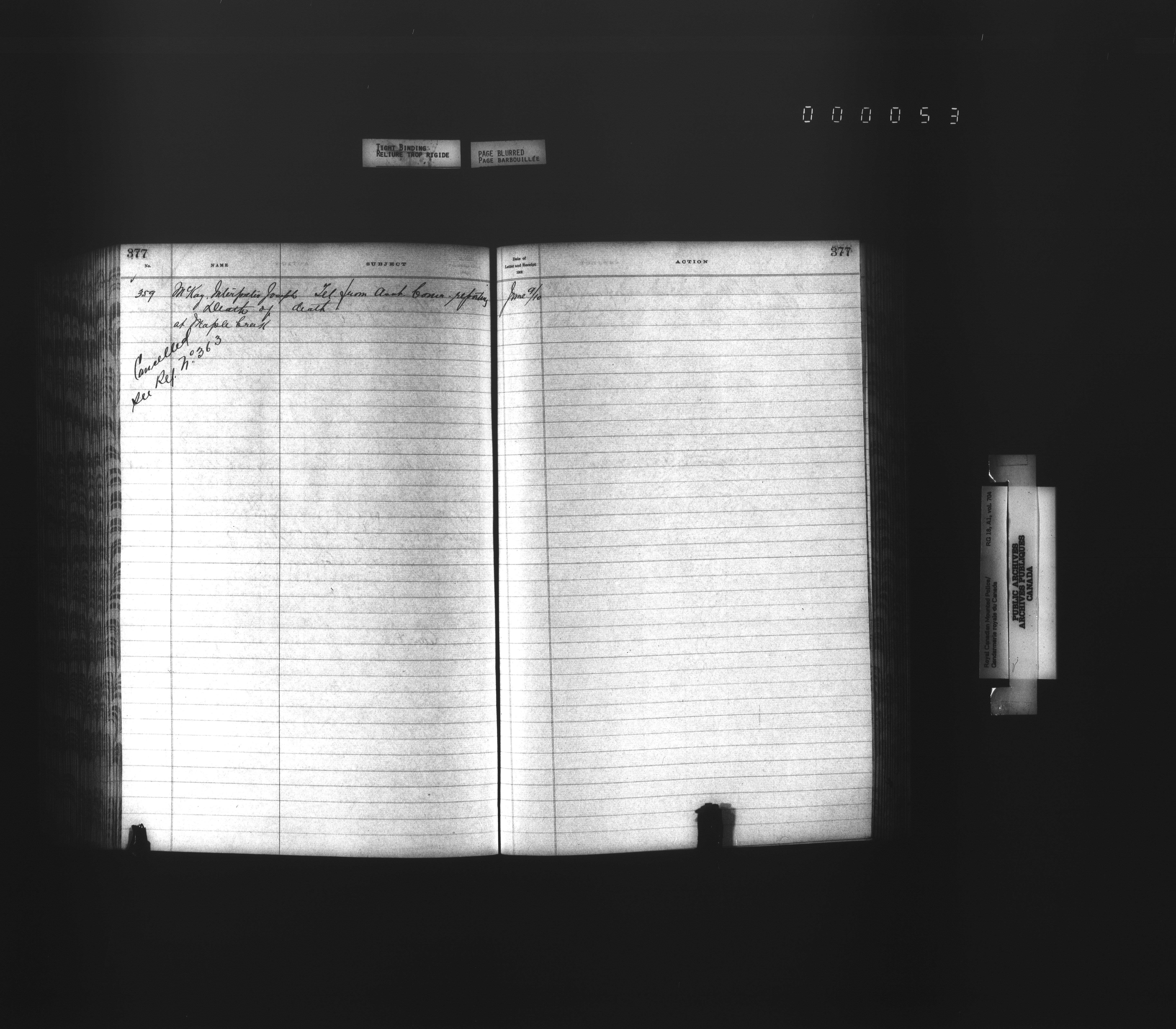 Royal Canadian Mounted Police, Office of the Comptroller, official correspondence : Indexes and registers - 4448