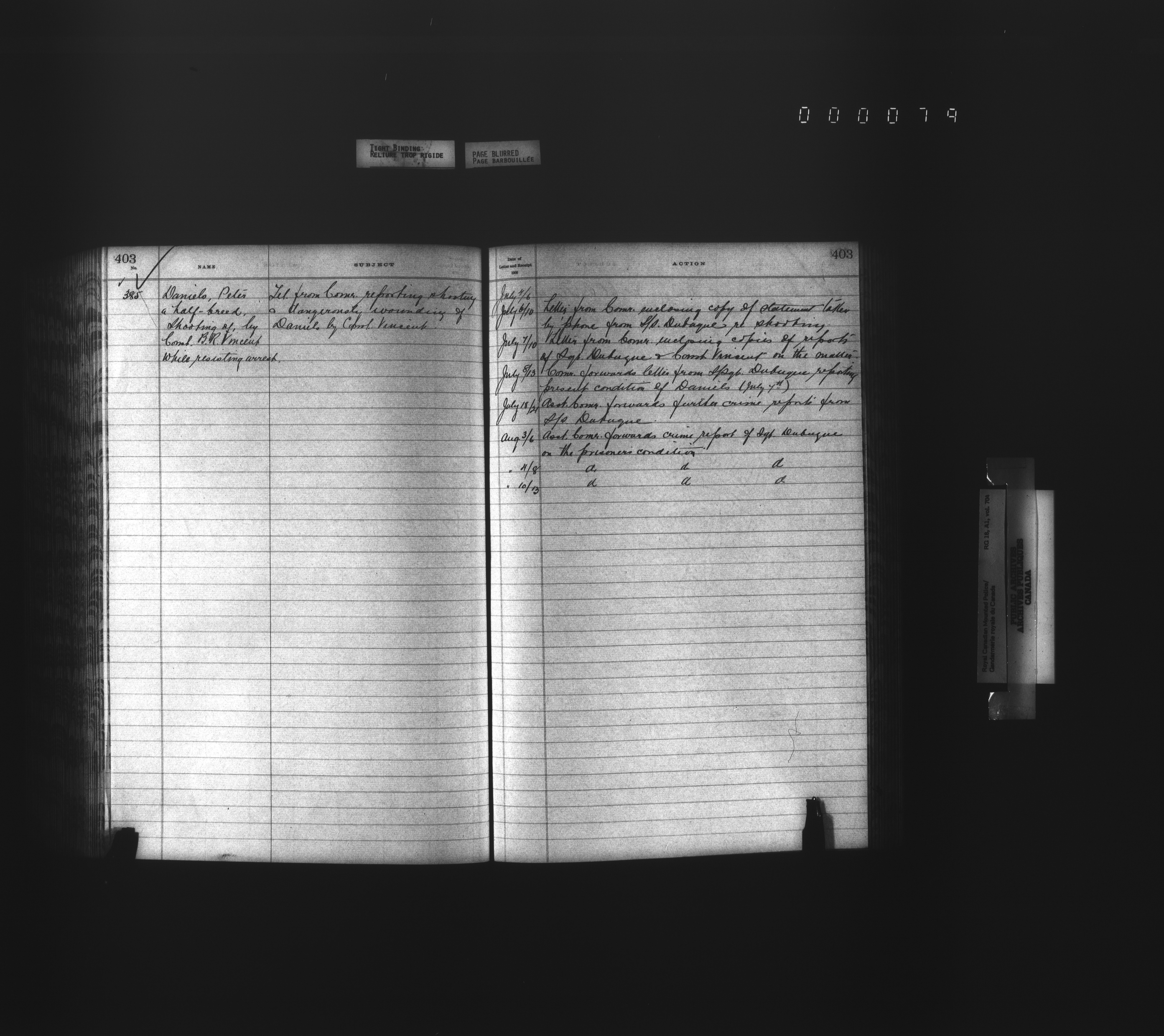 Royal Canadian Mounted Police, Office of the Comptroller, official correspondence : Indexes and registers - 4448