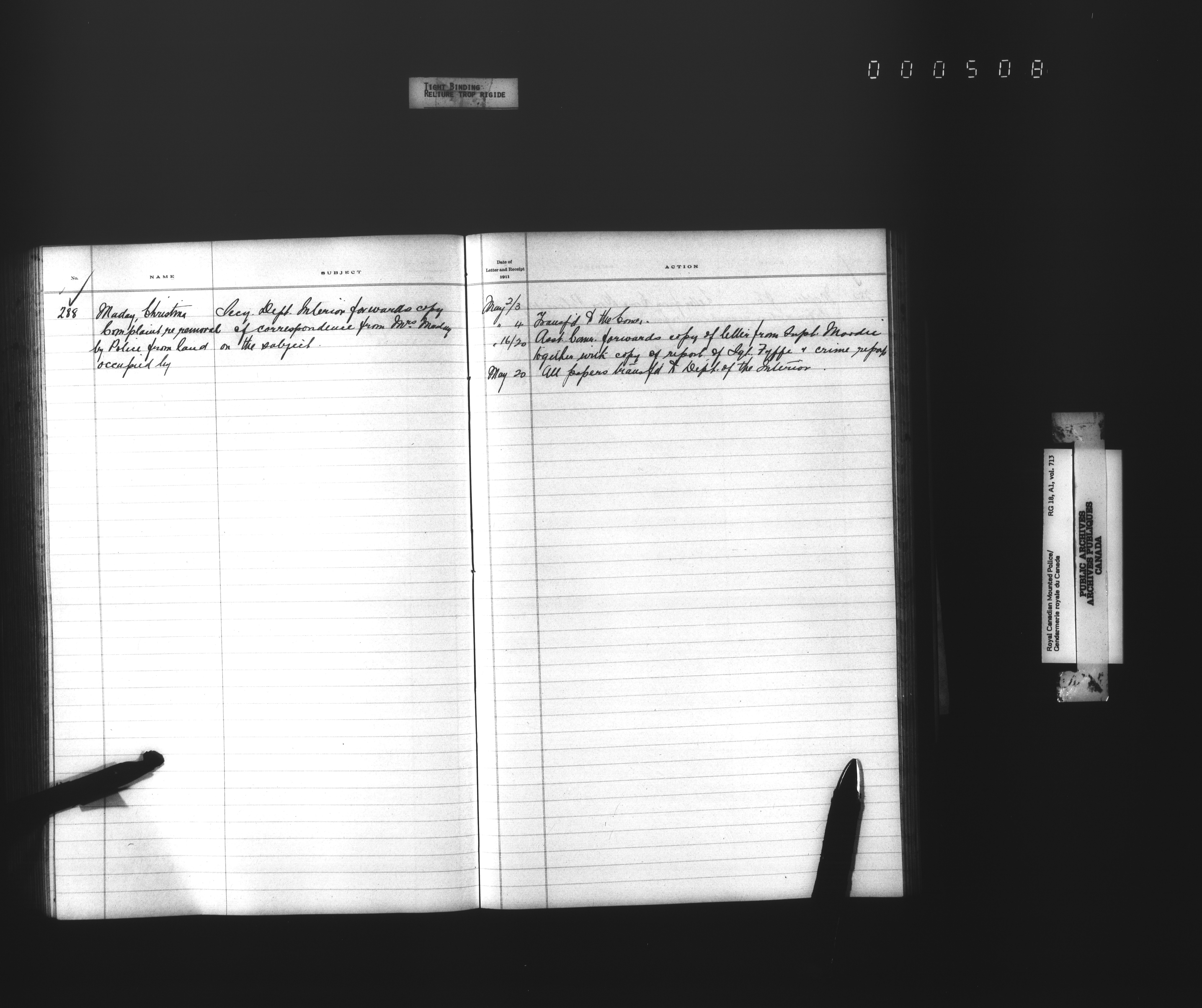 Royal Canadian Mounted Police, Office of the Comptroller, official correspondence : Indexes and registers - 4451