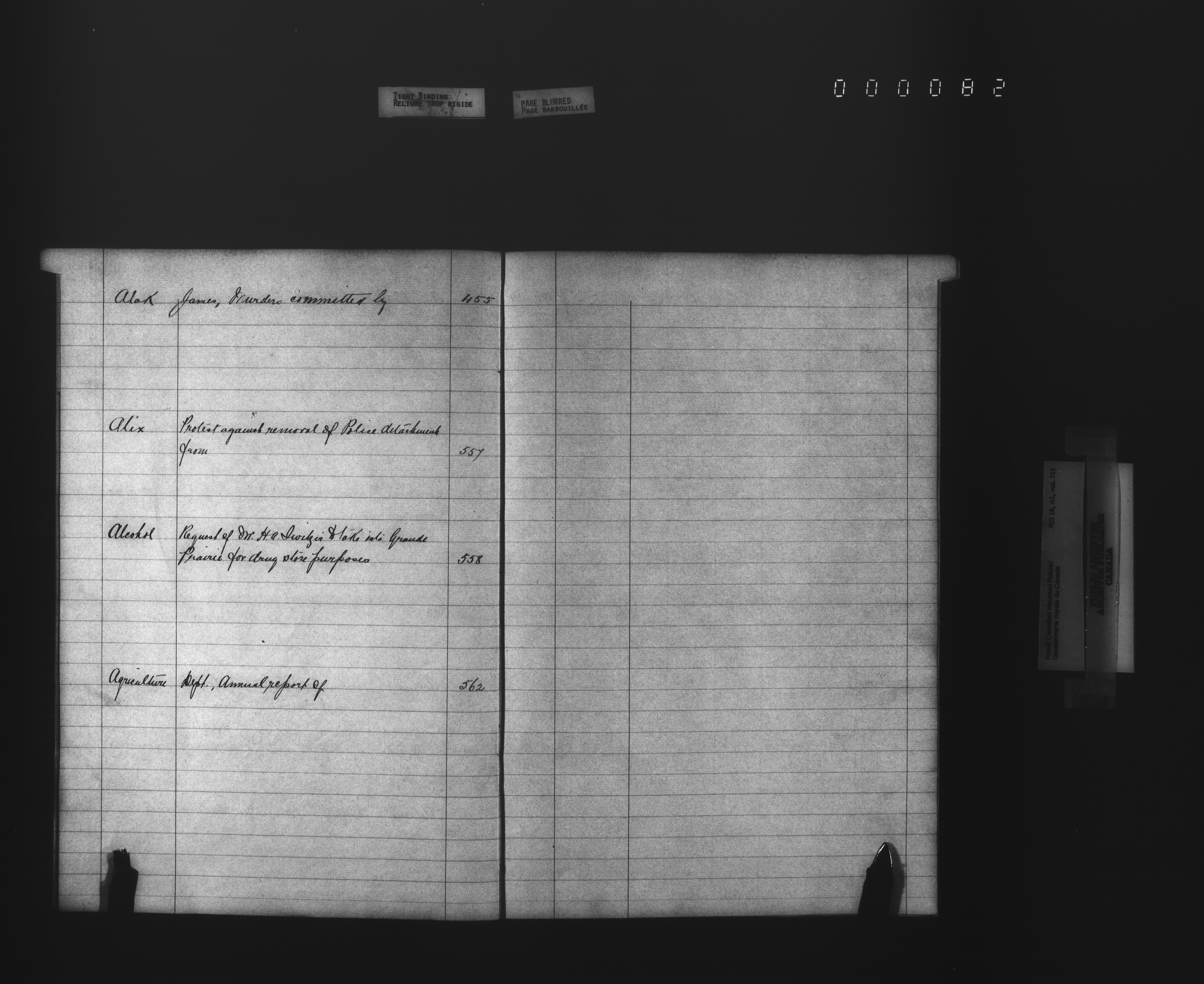 Royal Canadian Mounted Police, Office of the Comptroller, official correspondence : Indexes and registers - 4451