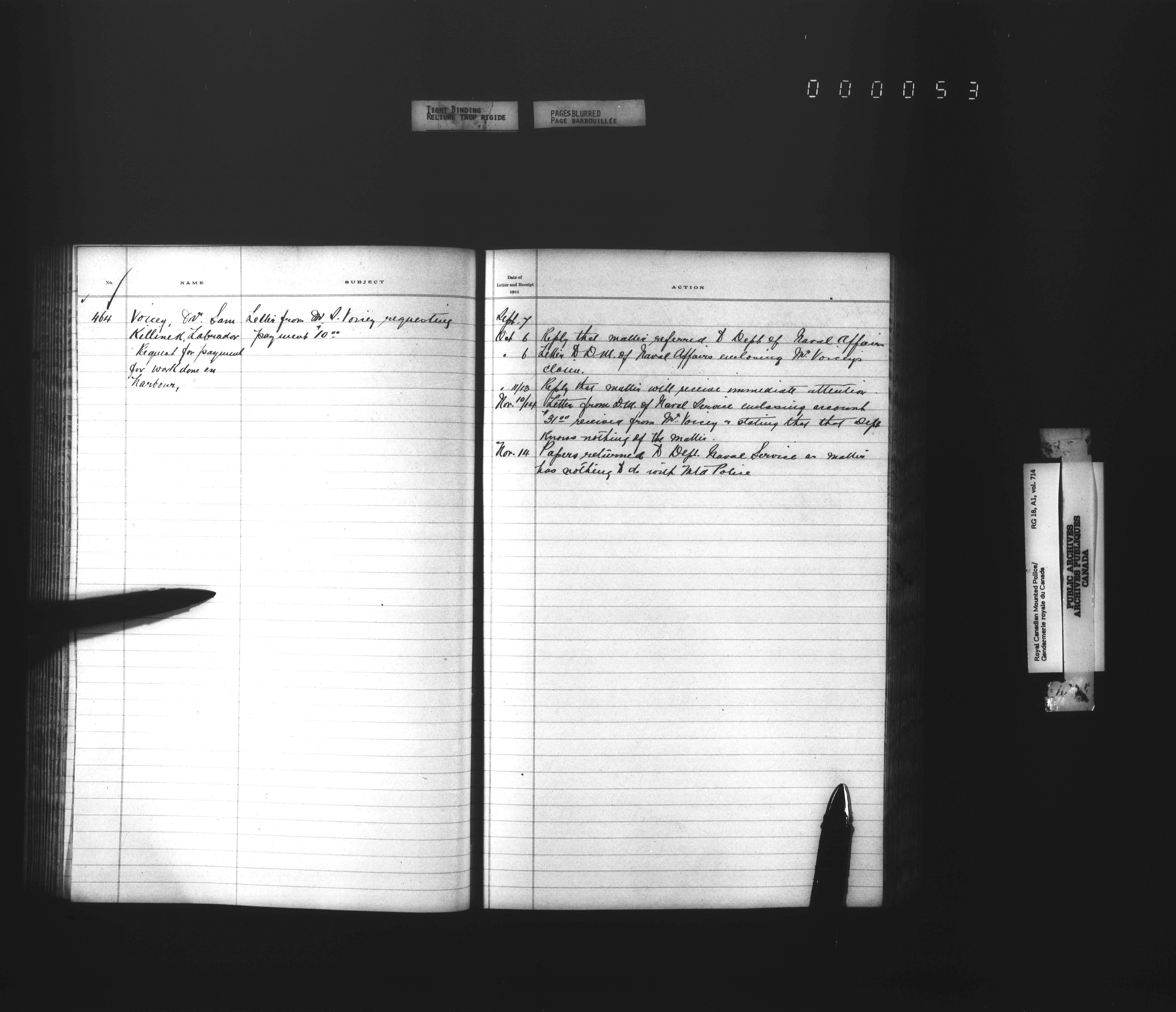 Royal Canadian Mounted Police, Office of the Comptroller, official correspondence : Indexes and registers - 4452