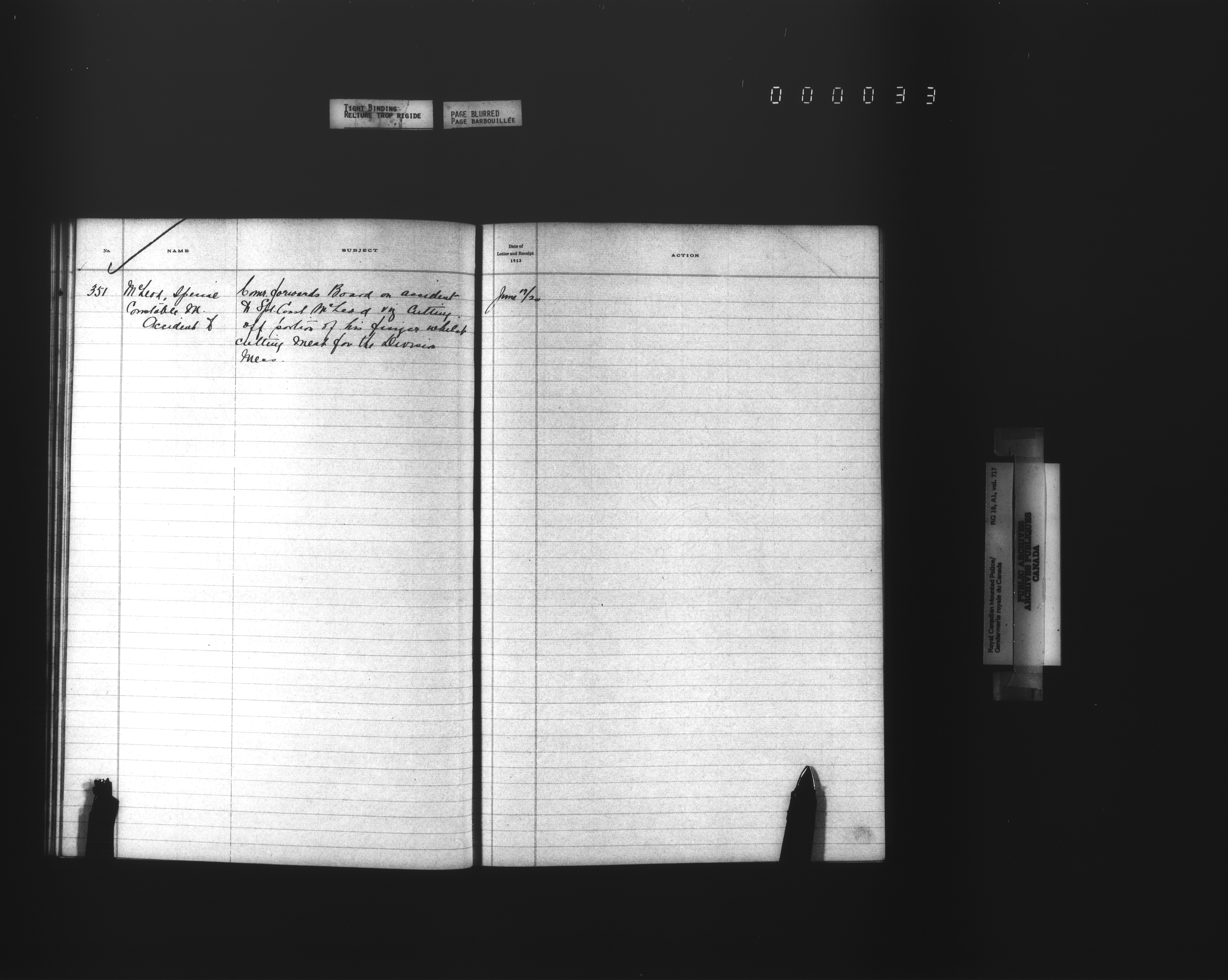Royal Canadian Mounted Police, Office of the Comptroller, official correspondence : Indexes and registers - 4453