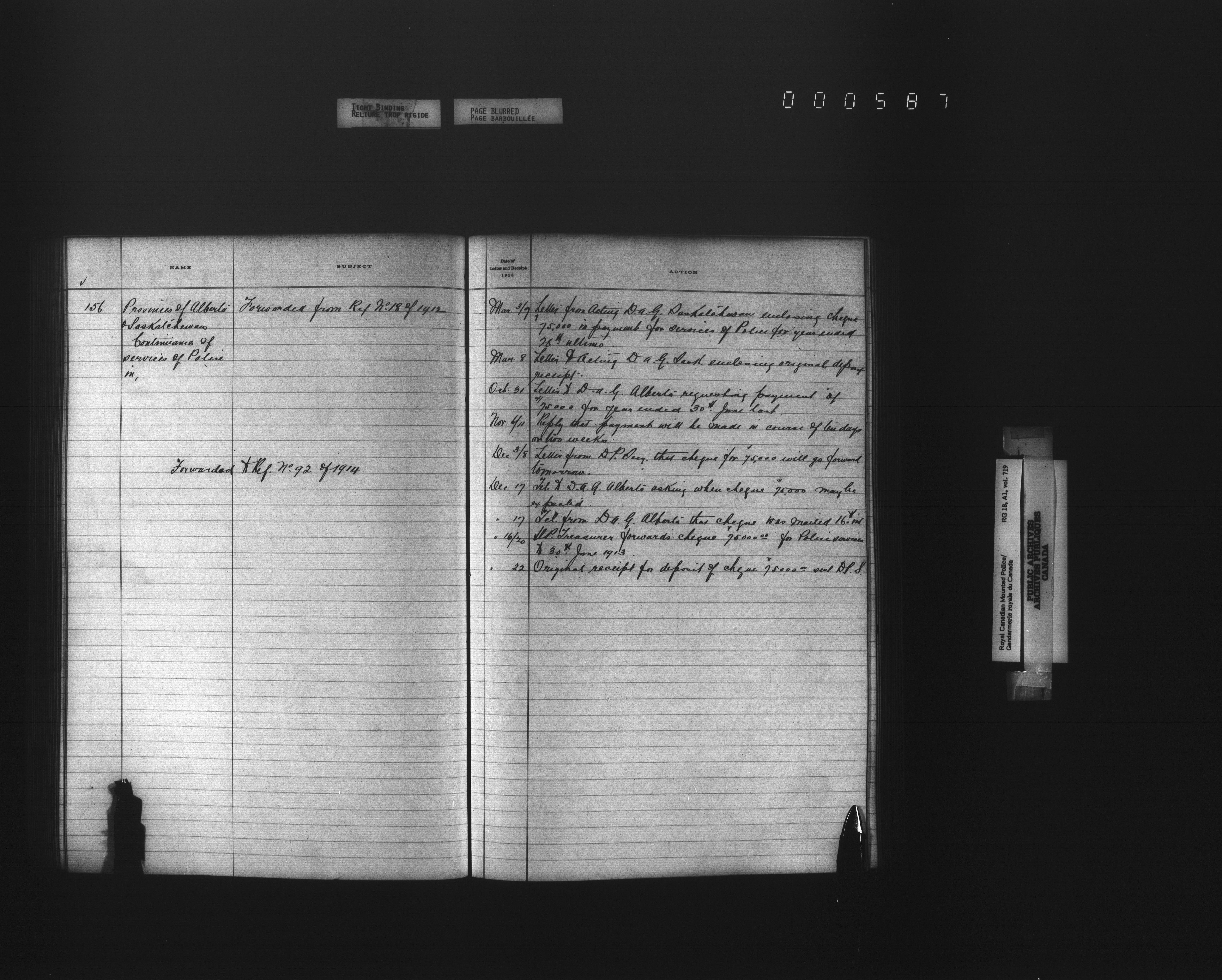Royal Canadian Mounted Police, Office of the Comptroller, official correspondence : Indexes and registers - 4453