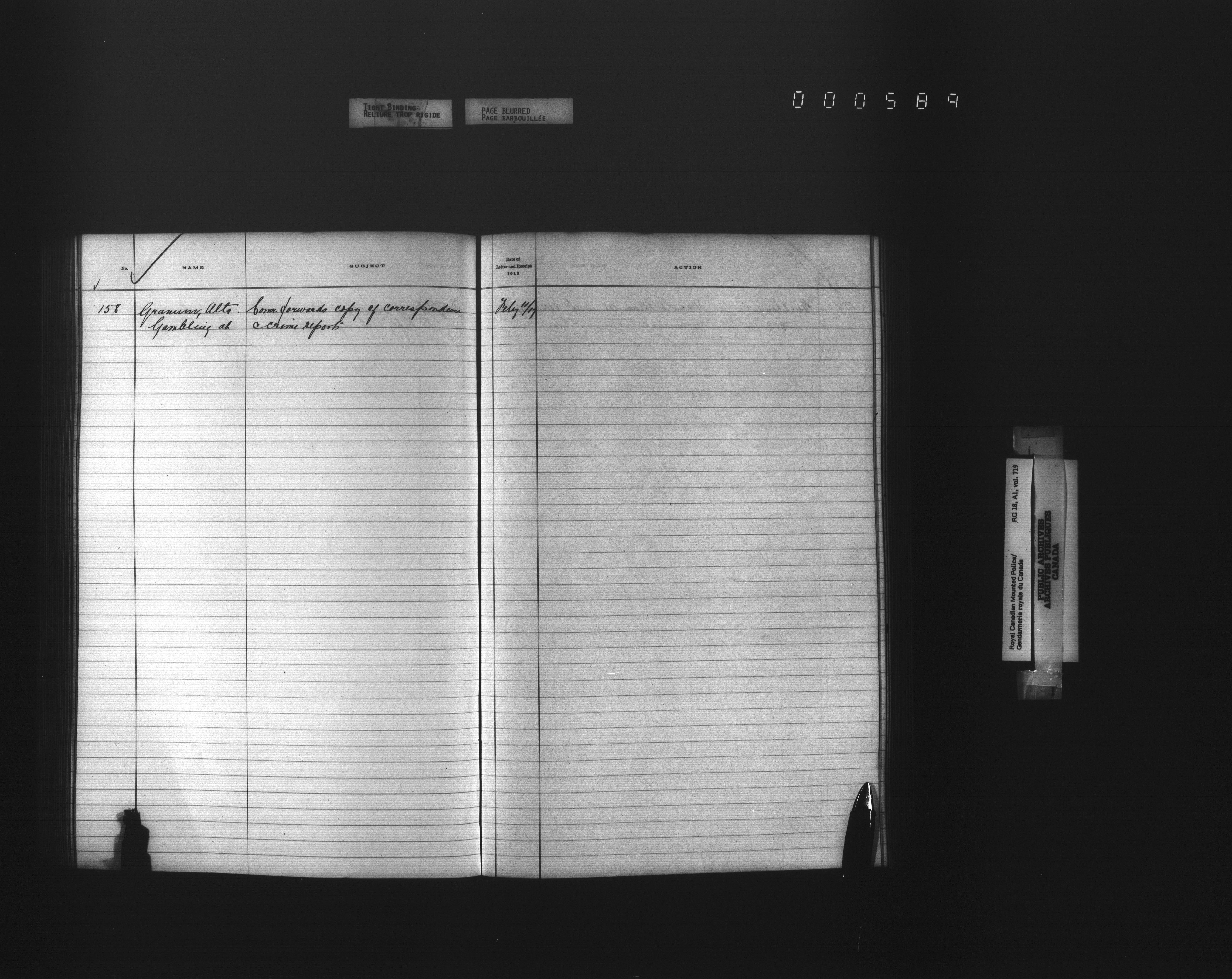 Royal Canadian Mounted Police, Office of the Comptroller, official correspondence : Indexes and registers - 4453