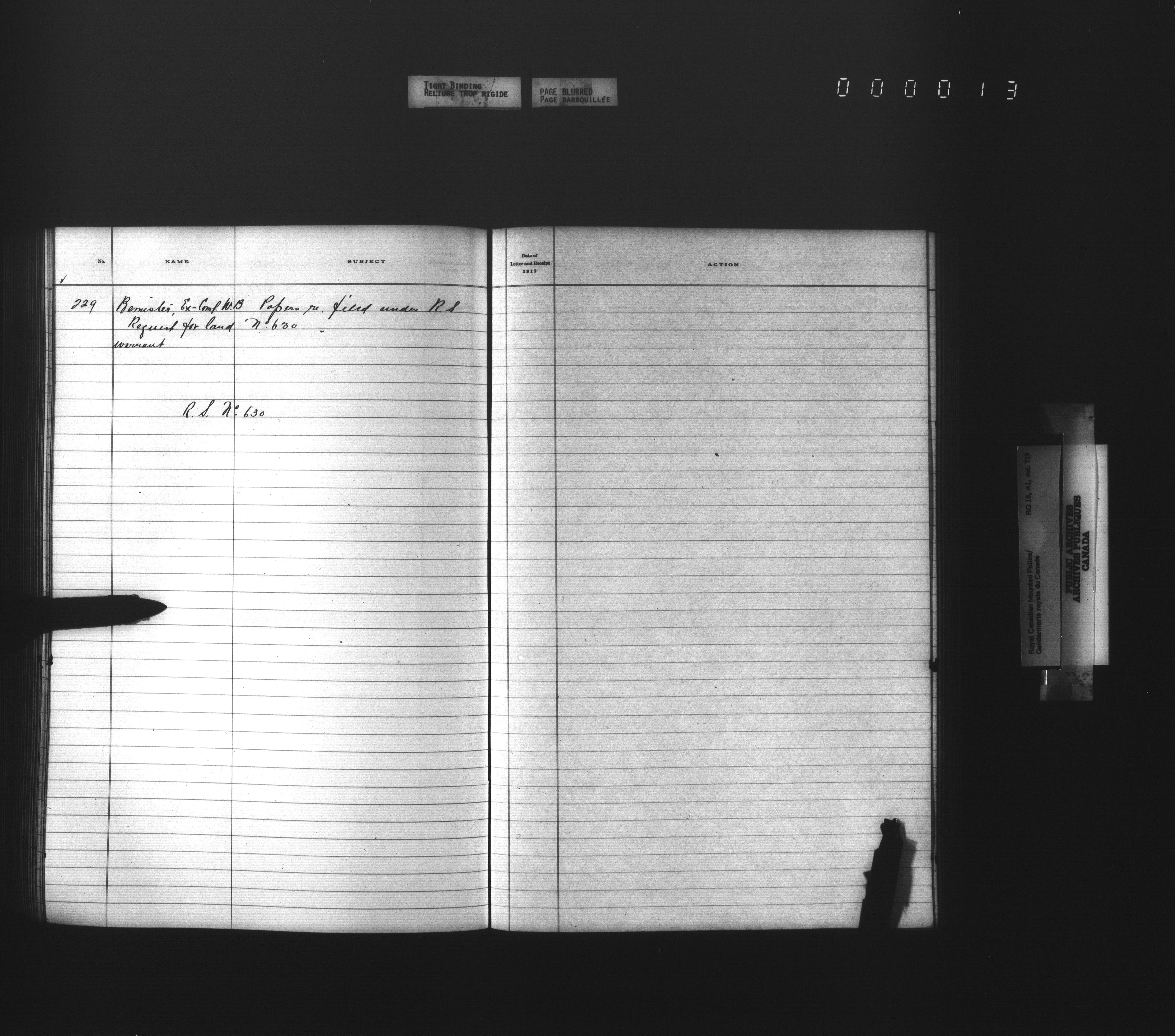 Royal Canadian Mounted Police, Office of the Comptroller, official correspondence : Indexes and registers - 4454