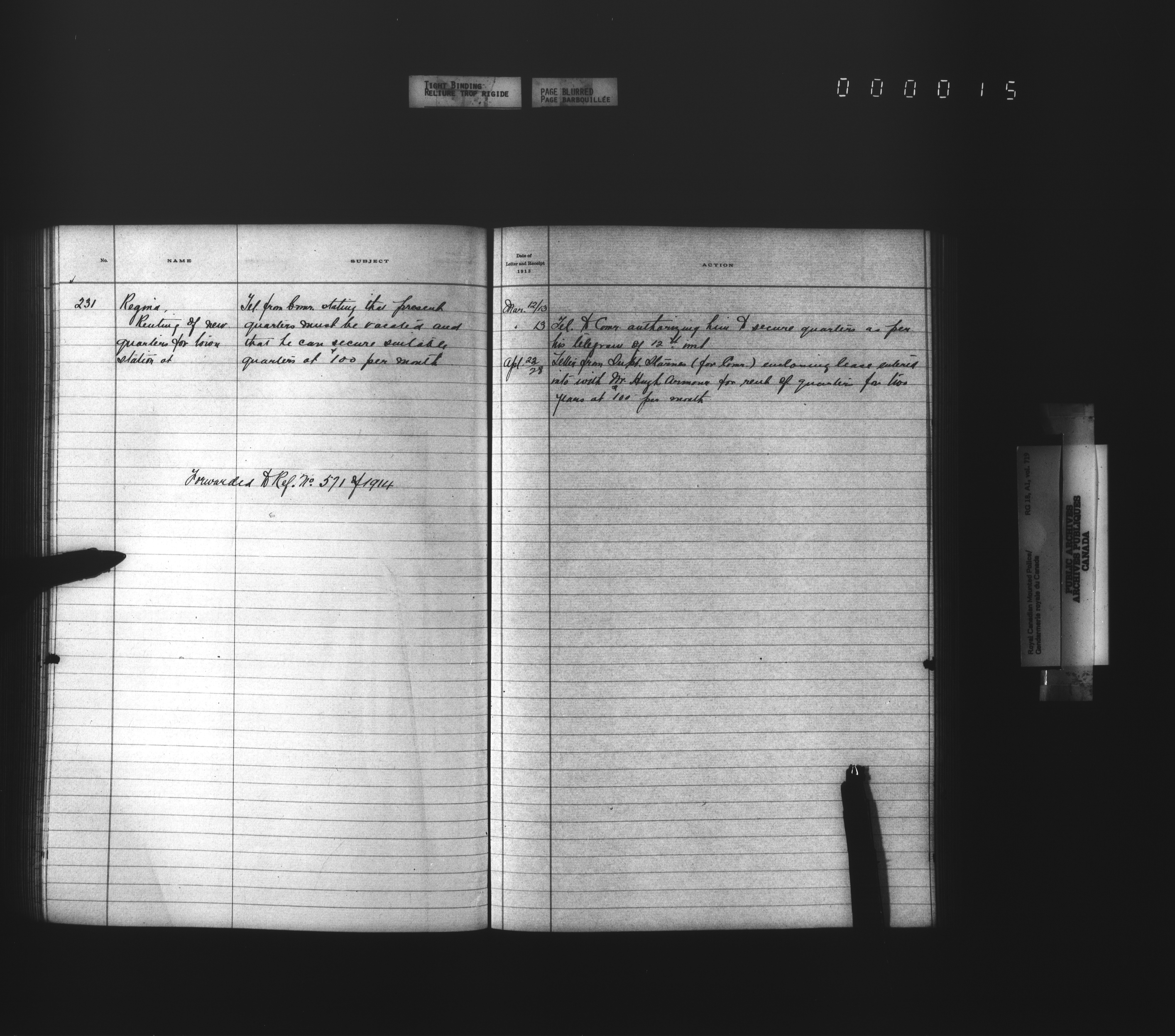 Royal Canadian Mounted Police, Office of the Comptroller, official correspondence : Indexes and registers - 4454