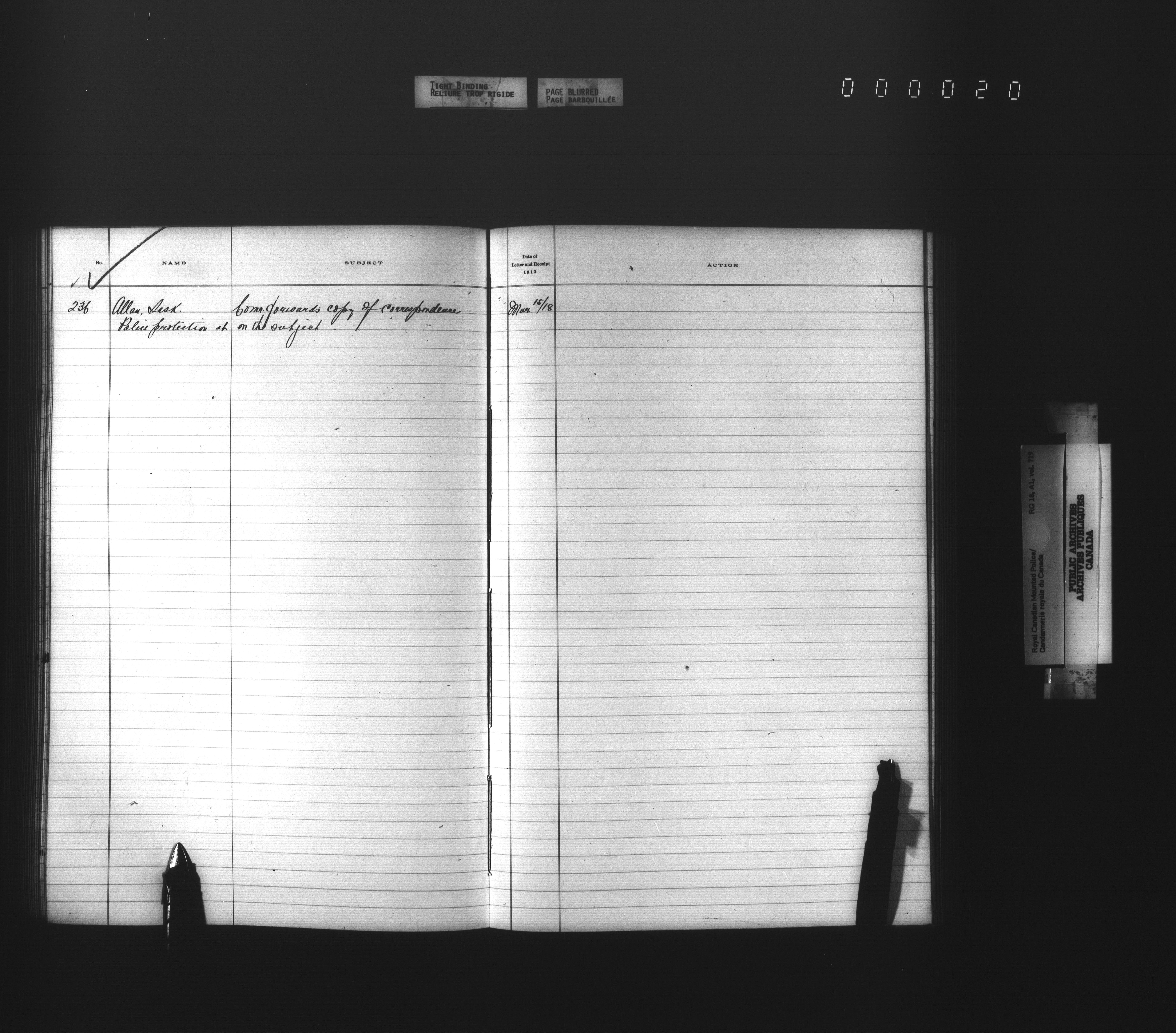 Royal Canadian Mounted Police, Office of the Comptroller, official correspondence : Indexes and registers - 4454