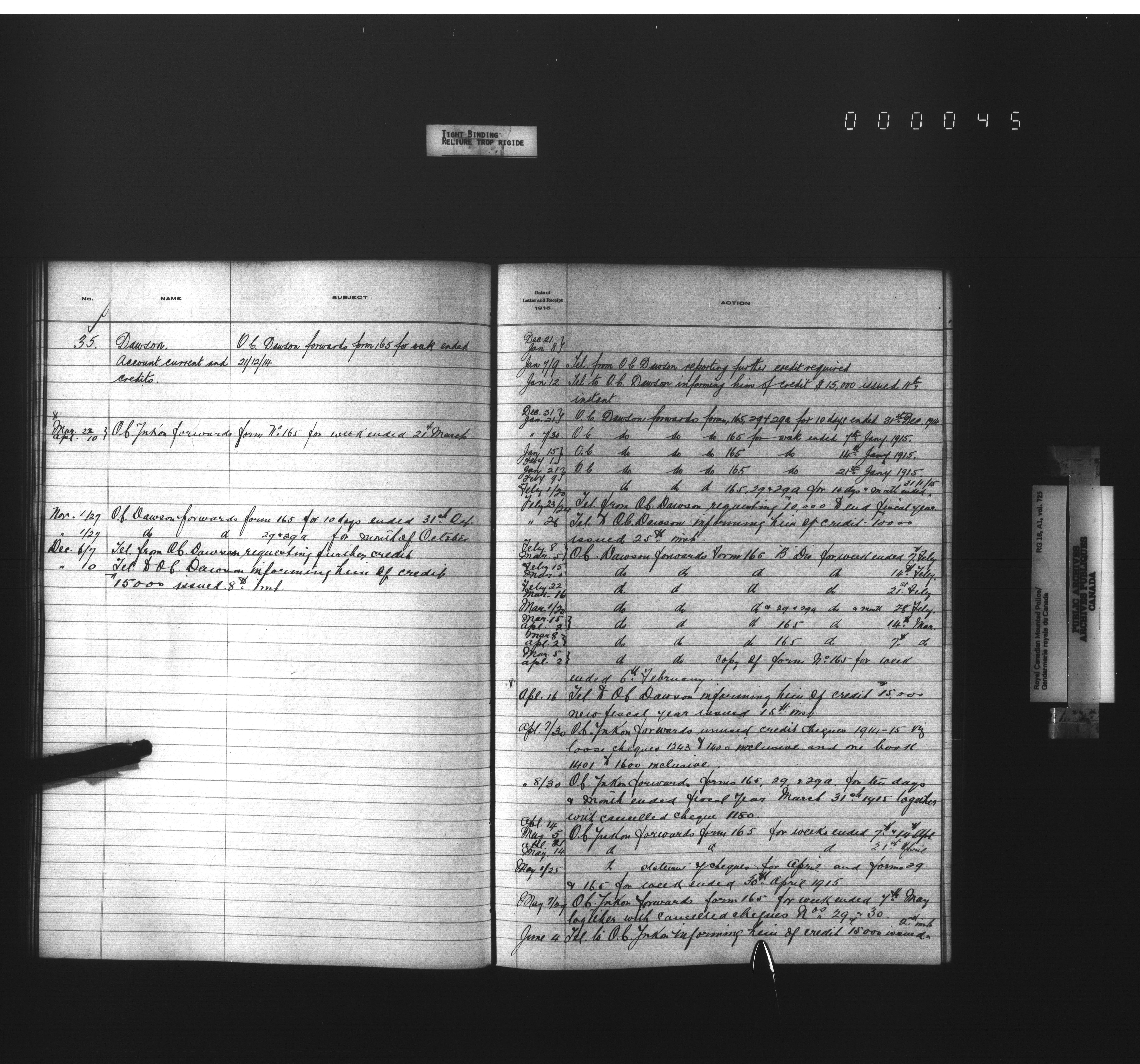 Royal Canadian Mounted Police, Office of the Comptroller, official correspondence : Indexes and registers - 4456