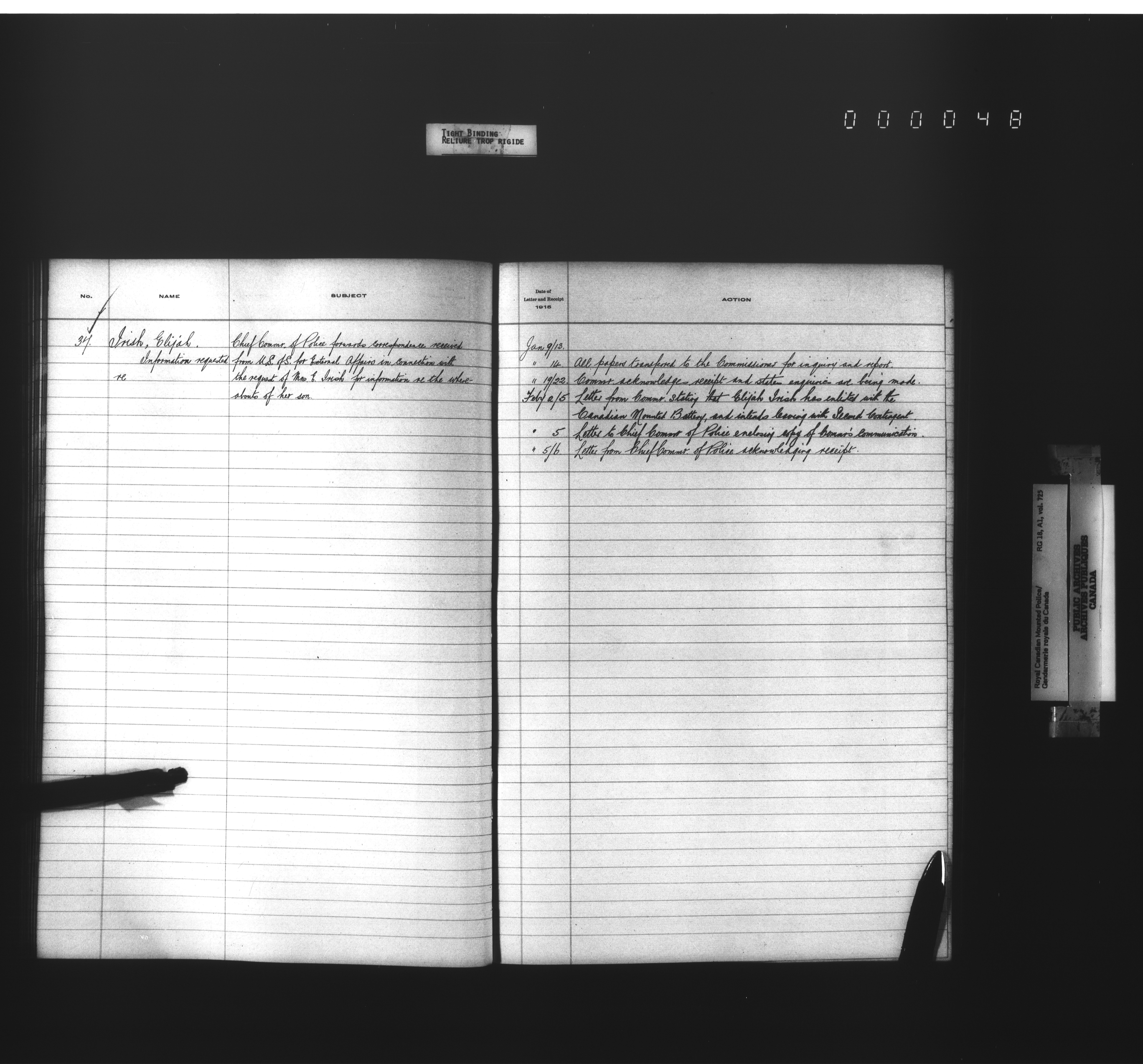 Royal Canadian Mounted Police, Office of the Comptroller, official correspondence : Indexes and registers - 4456