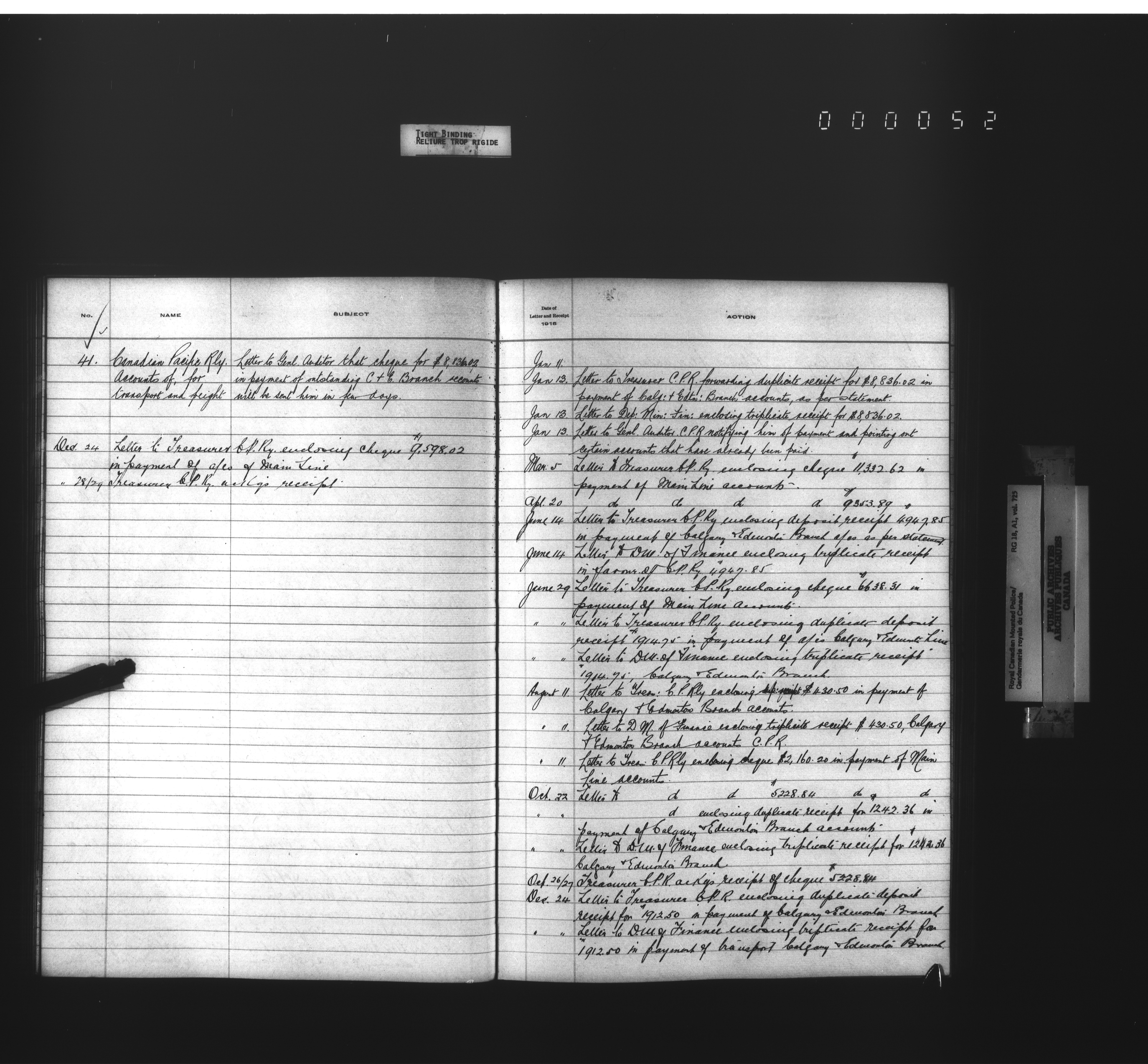 Royal Canadian Mounted Police, Office of the Comptroller, official correspondence : Indexes and registers - 4456