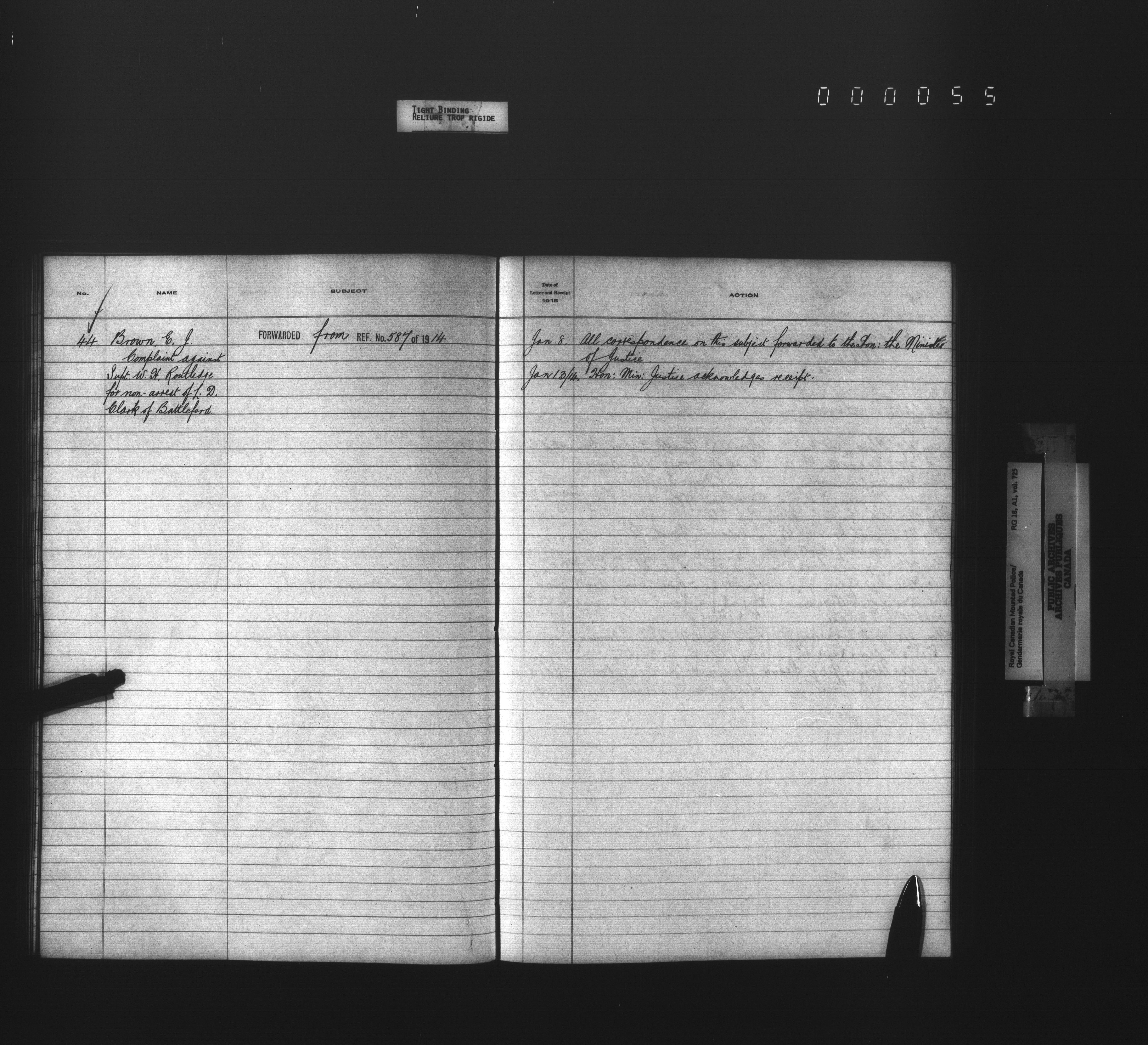 Royal Canadian Mounted Police, Office of the Comptroller, official correspondence : Indexes and registers - 4456