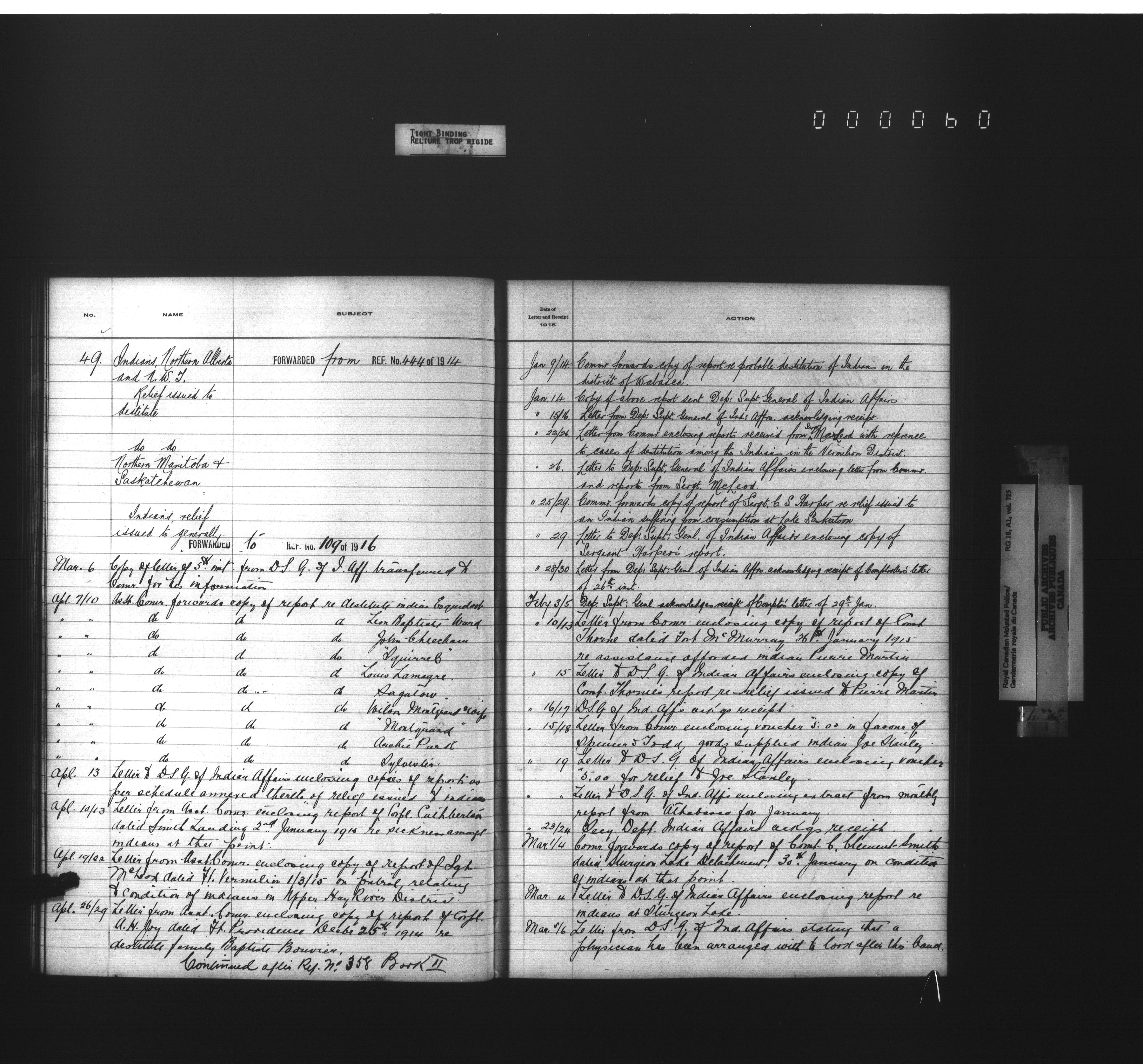 Royal Canadian Mounted Police, Office of the Comptroller, official correspondence : Indexes and registers - 4456