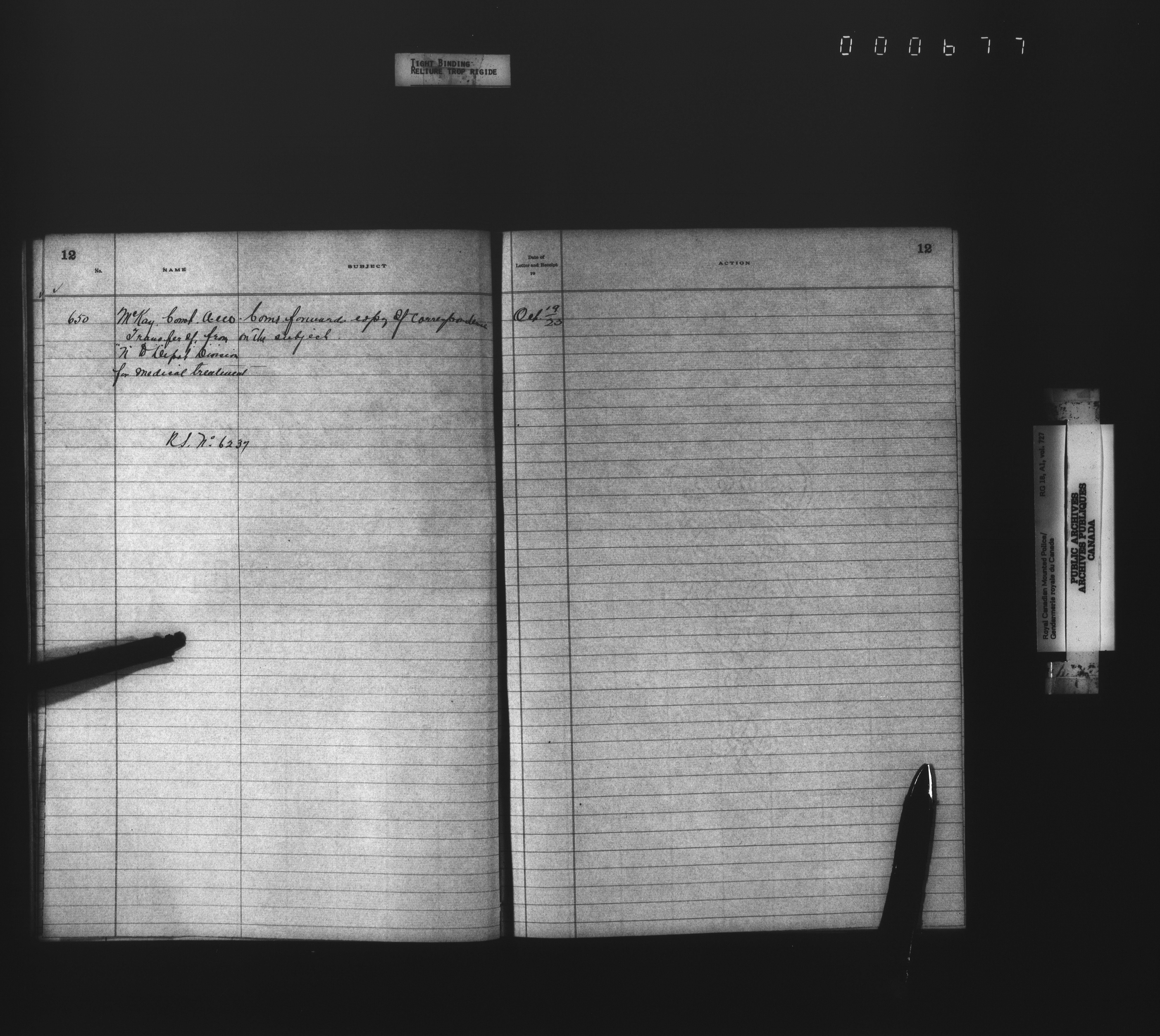 Royal Canadian Mounted Police, Office of the Comptroller, official correspondence : Indexes and registers - 4456