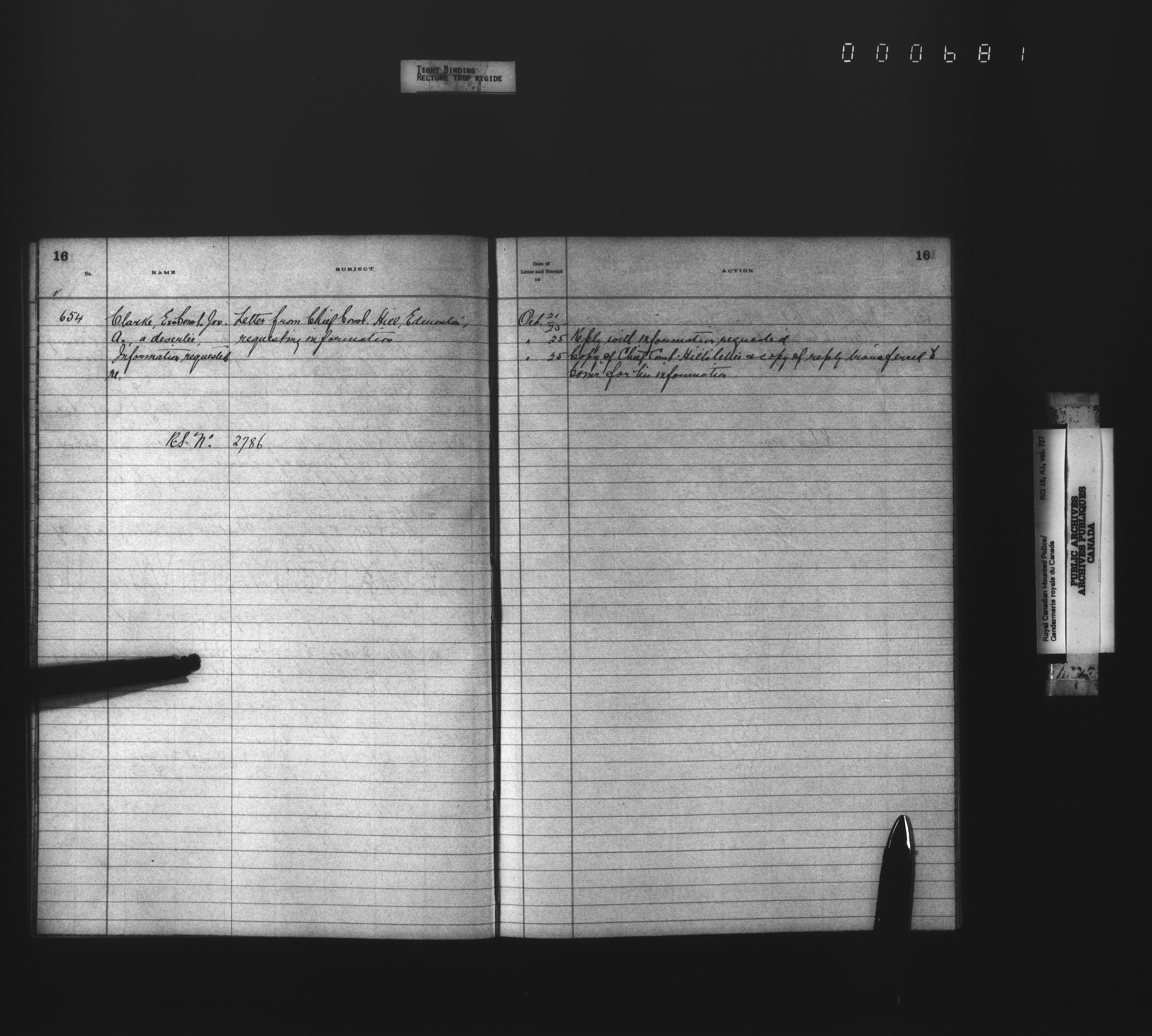 Royal Canadian Mounted Police, Office of the Comptroller, official correspondence : Indexes and registers - 4456