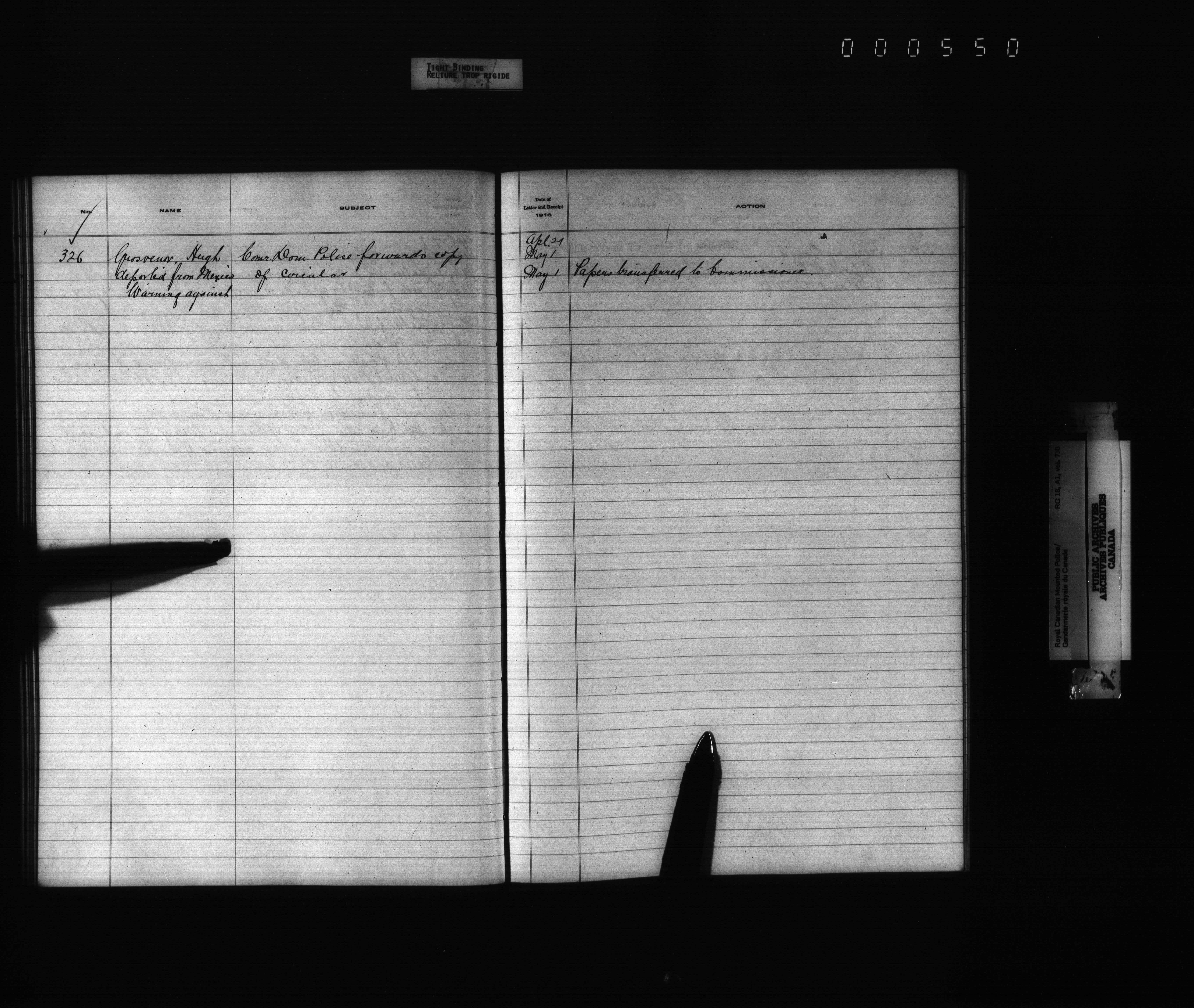 Royal Canadian Mounted Police, Office of the Comptroller, official correspondence : Indexes and registers - 4457
