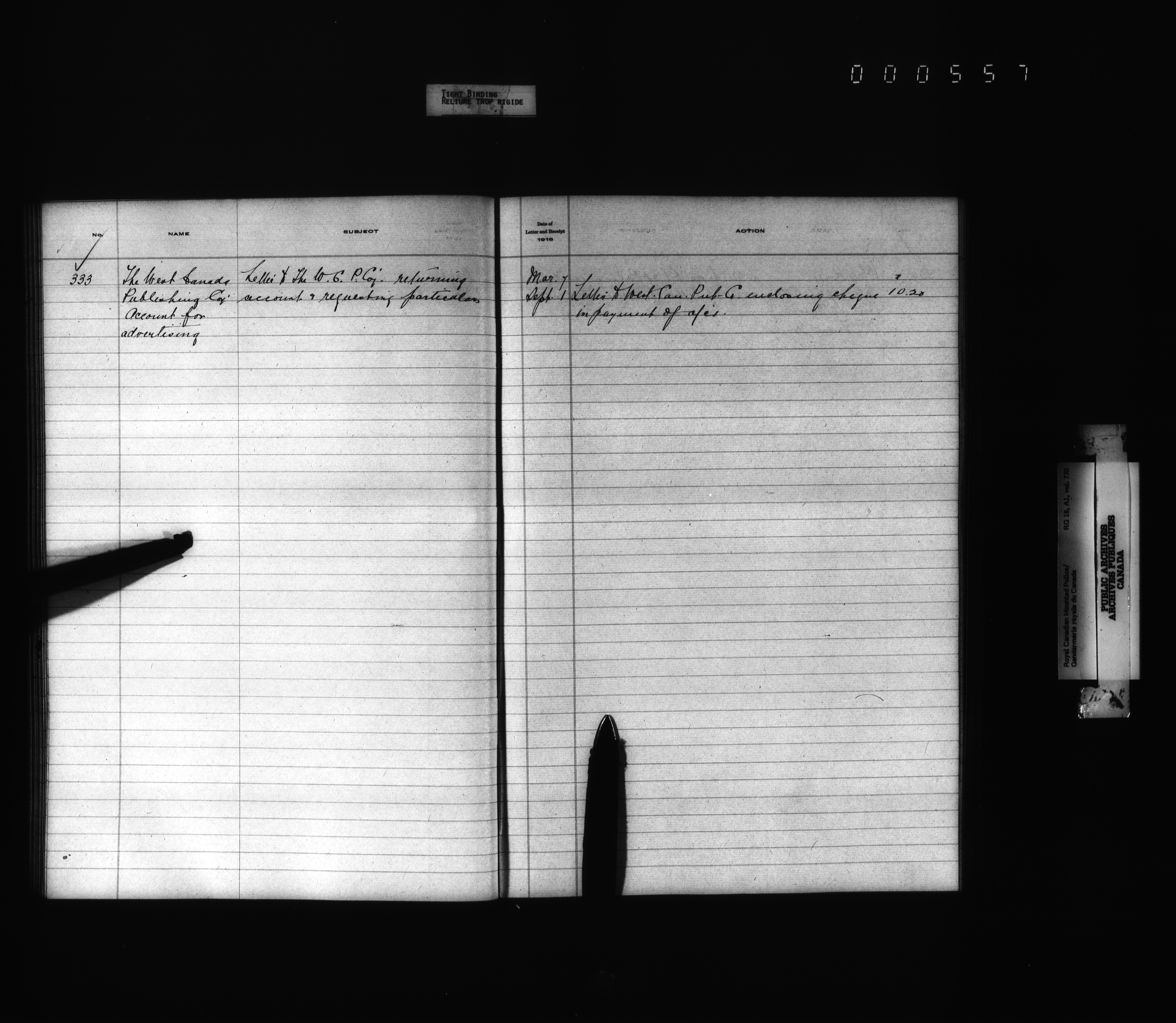 Royal Canadian Mounted Police, Office of the Comptroller, official correspondence : Indexes and registers - 4457