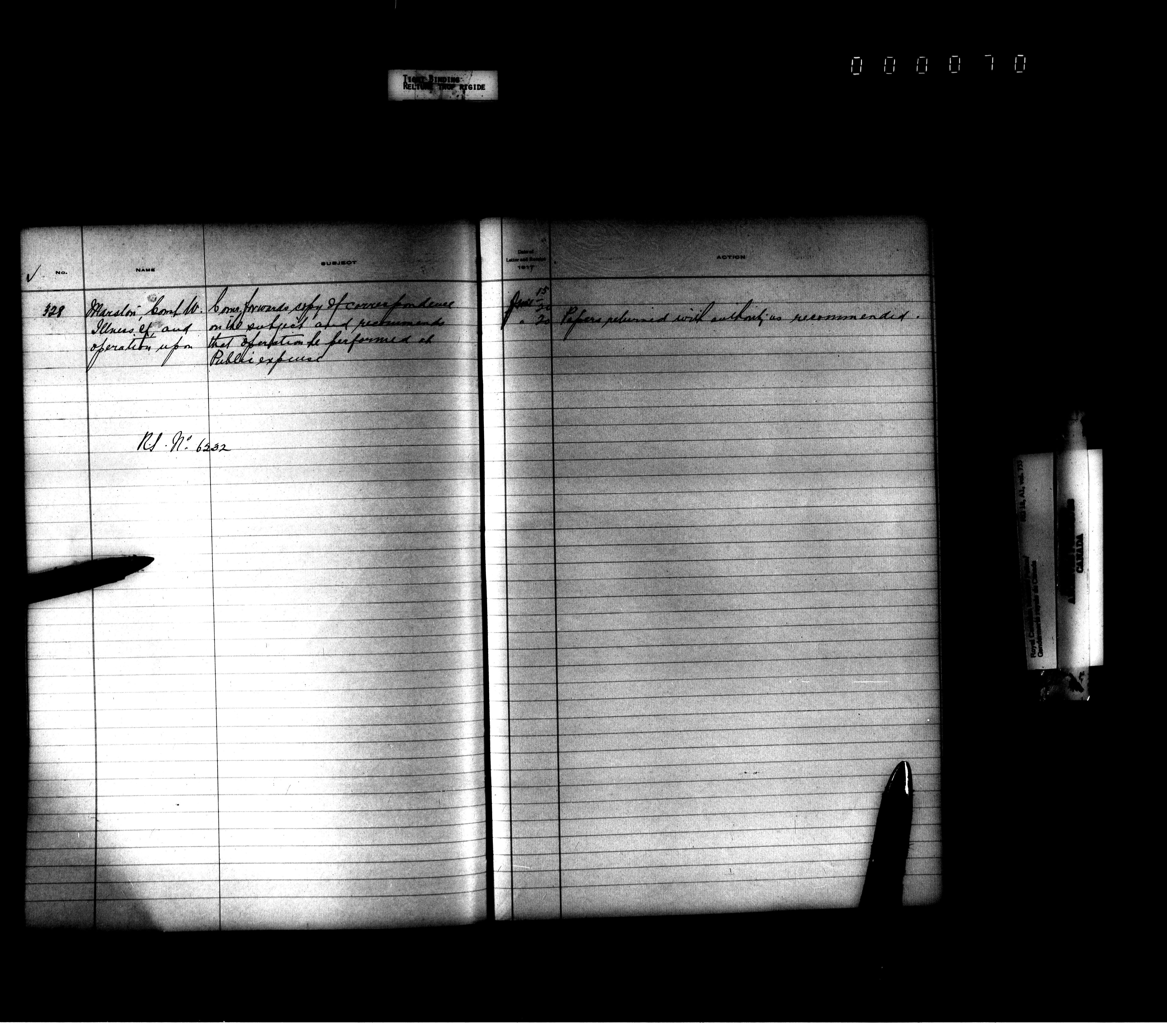 Royal Canadian Mounted Police, Office of the Comptroller, official correspondence : Indexes and registers - 4459