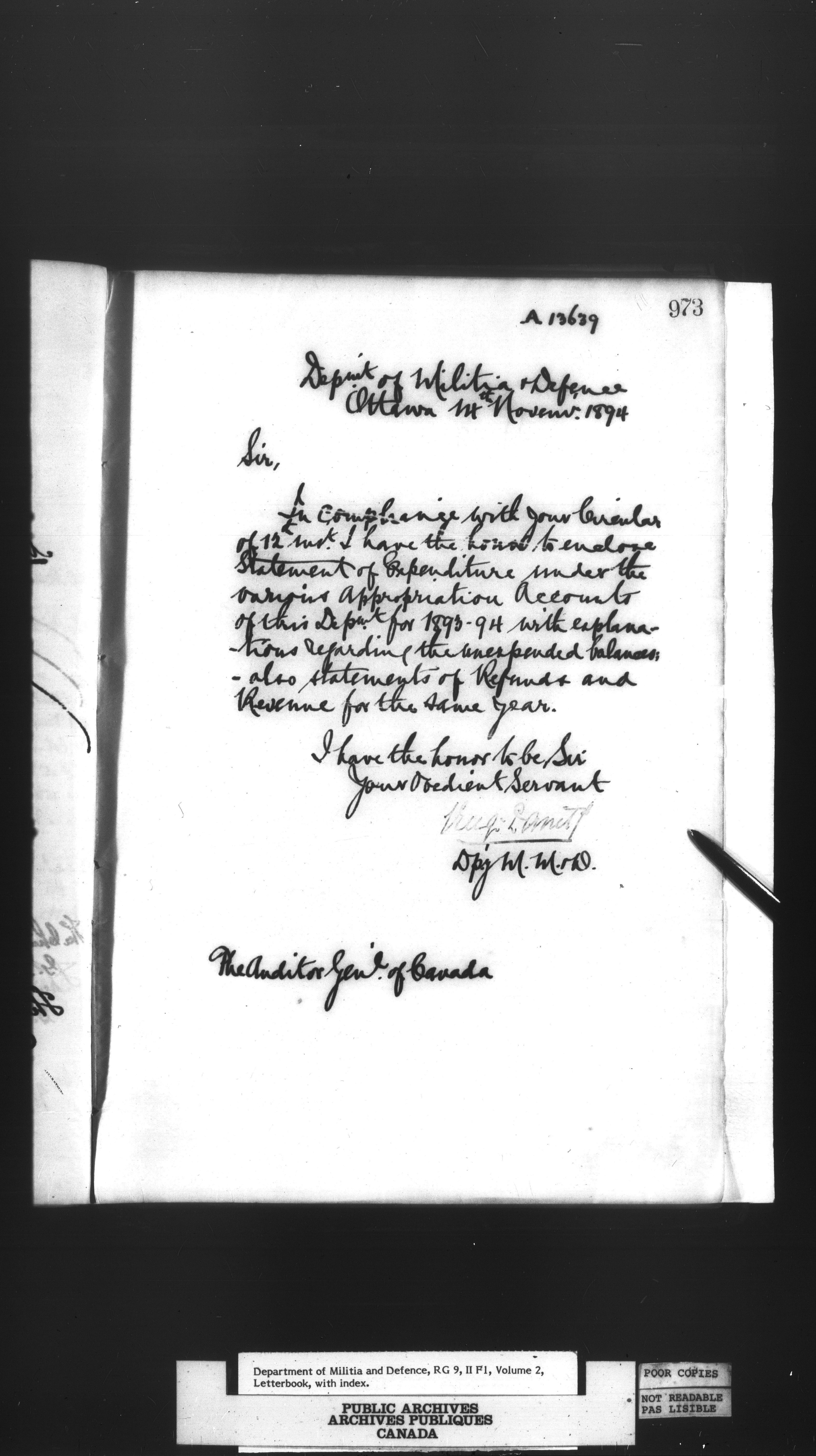 Militia and Defence : Accounts and Pay Branch, correspondence - 446
