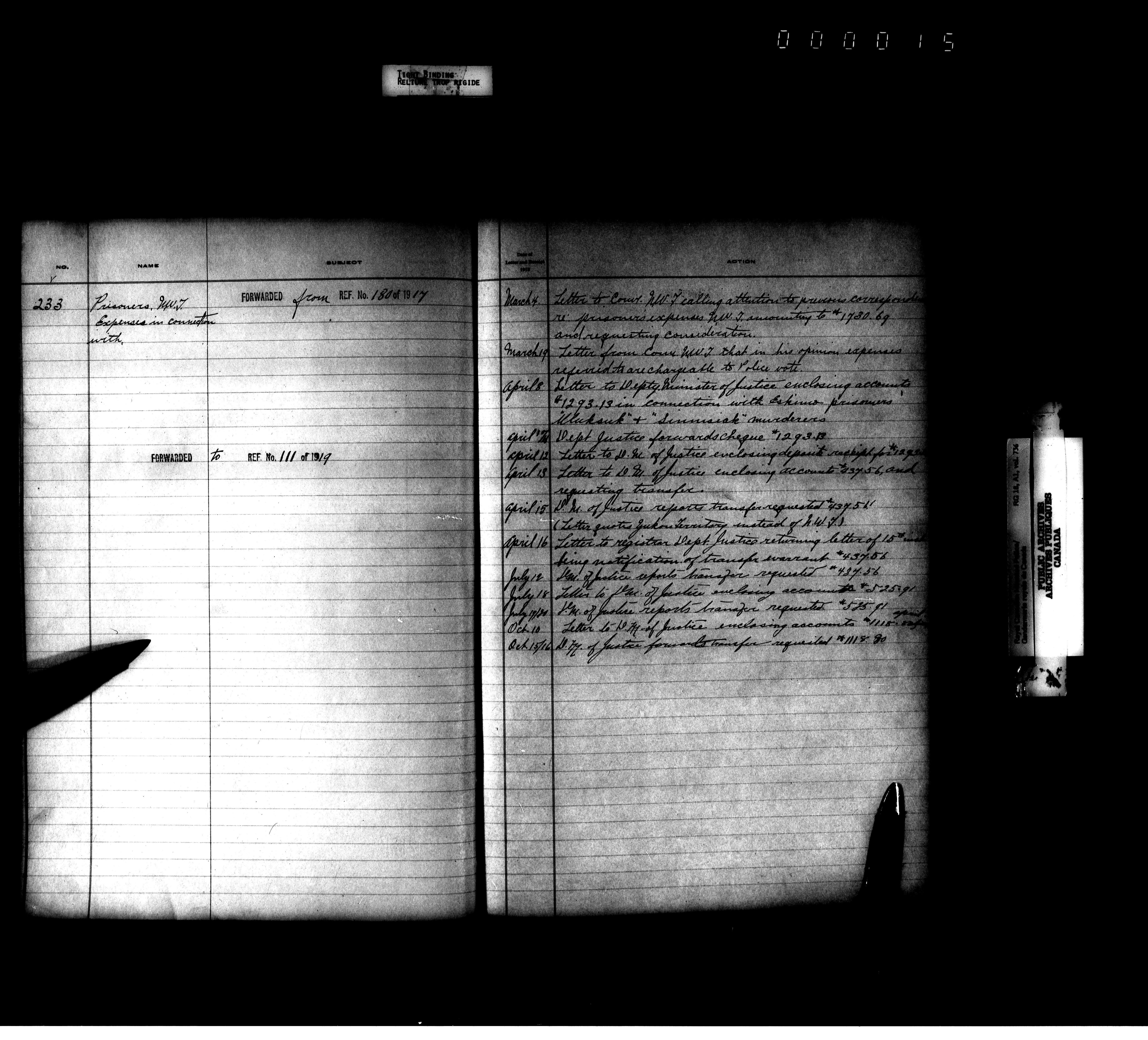 Royal Canadian Mounted Police, Office of the Comptroller, official correspondence : Indexes and registers - 4460
